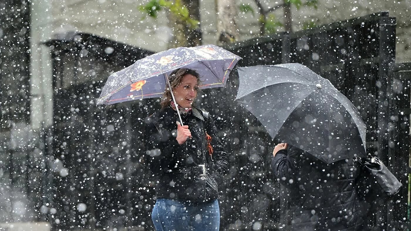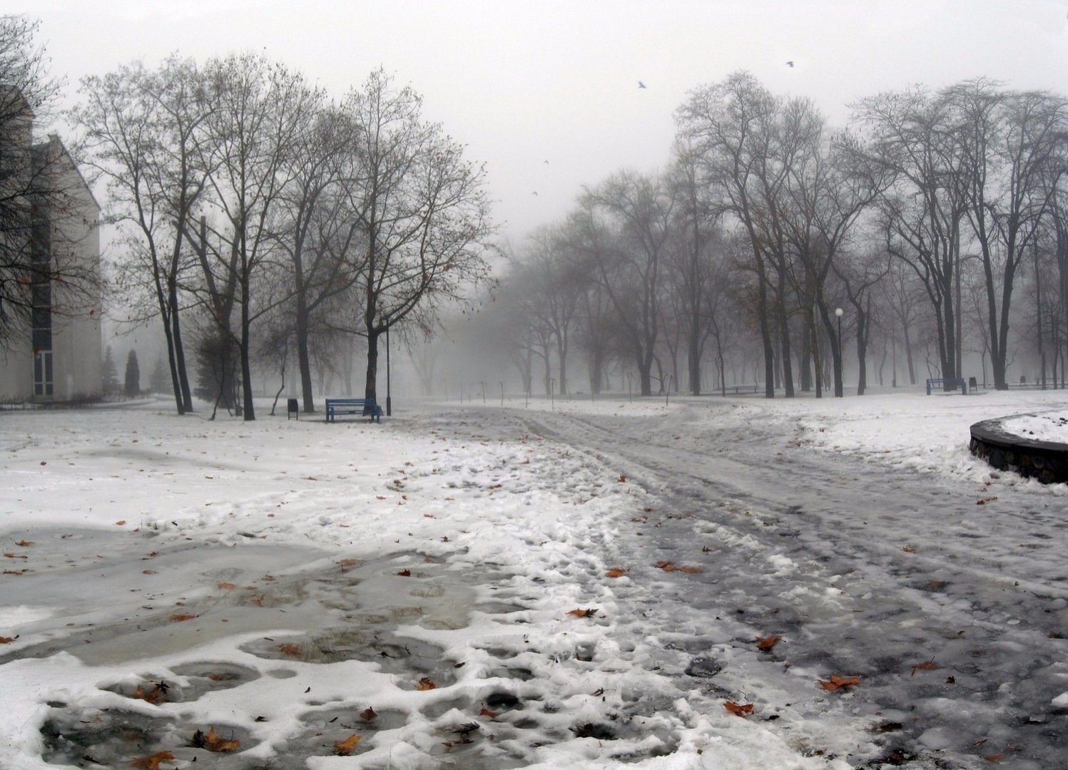 На улице великолепная зимняя картина: пушистый снег тихонько кружится, покрывая землю белым покрывалом, а дождевые капли играют на поверхности луж. Этот прекрасный конtrast между мягким покрывалом снега и блестящей поверхностью дороги создает удивительное зрелище. Снежинки и капельки дождя могут выглядеть как маленькие алмазы, блестящие на солнце, добавляя живописности этой зимней сцене и заставляя нас ощущать всю красоту и удивительность природы.