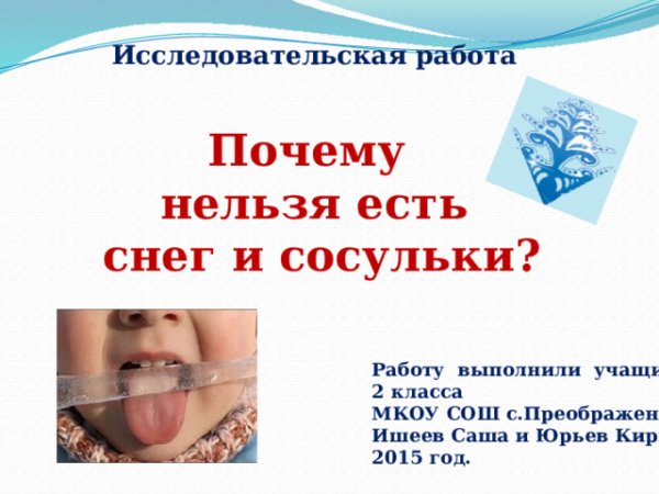 Исследовательский проект почему нельзя есть снег