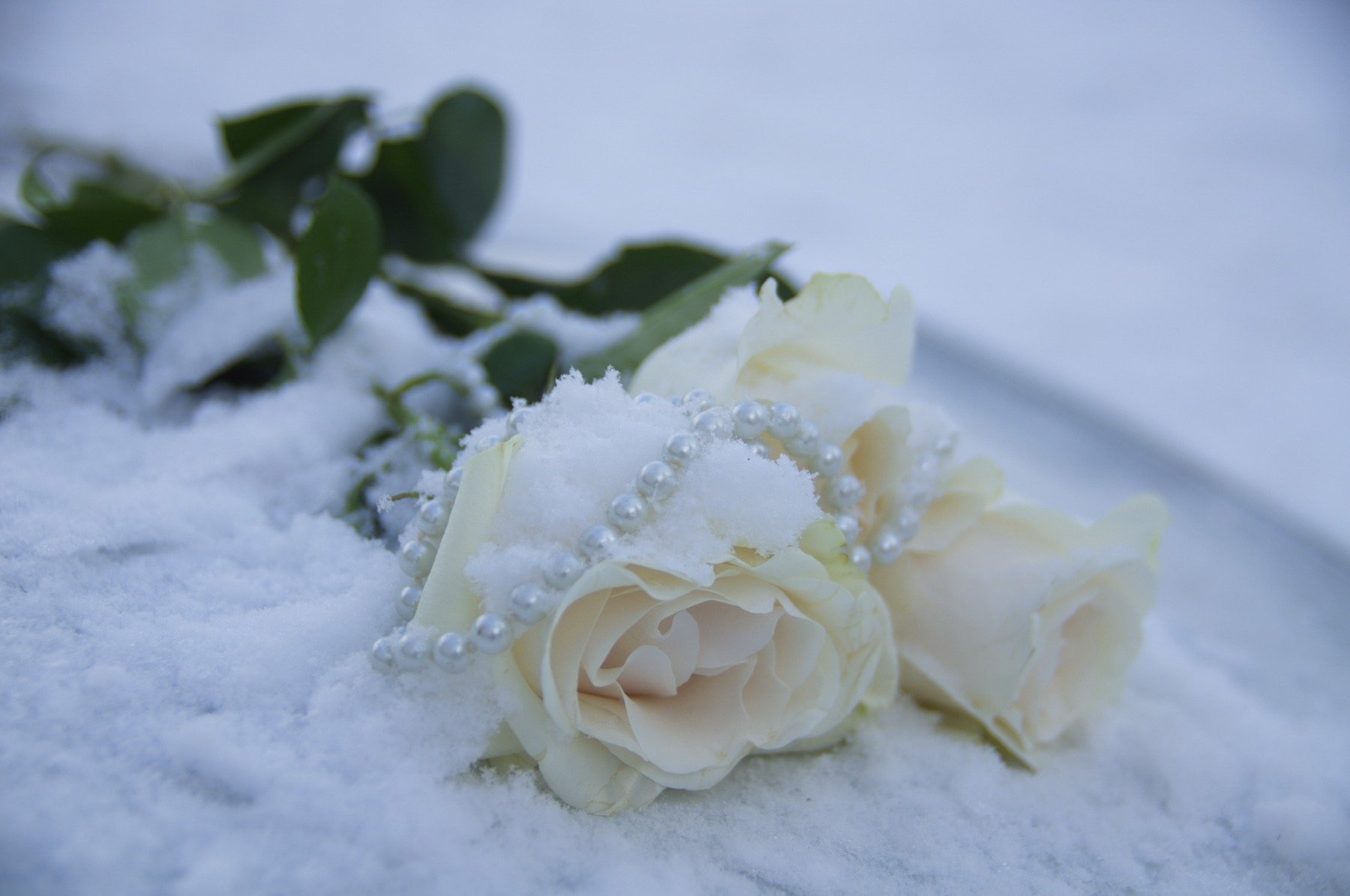 Белые розы на снегу
