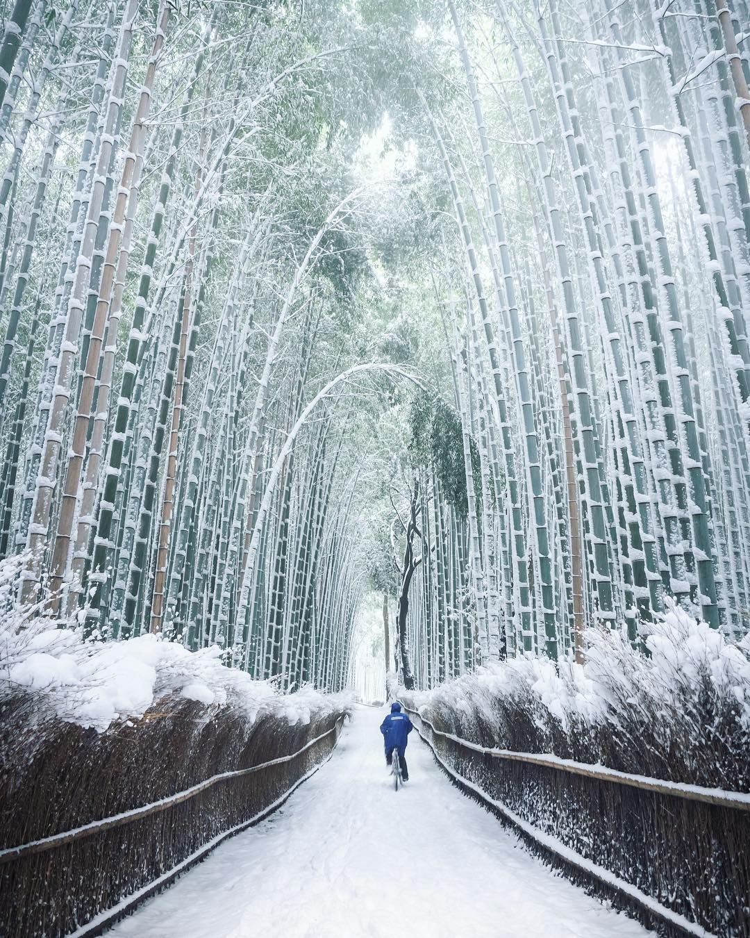Бамбуковый лес в снегу Киото Япония