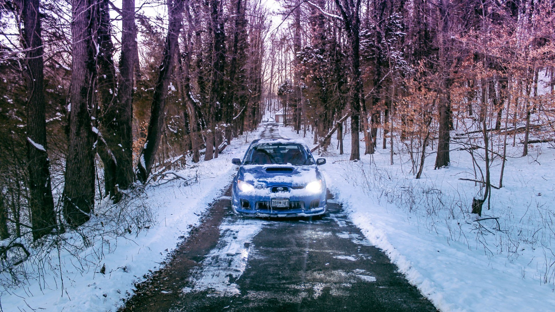 Машина в заснеженном лесу