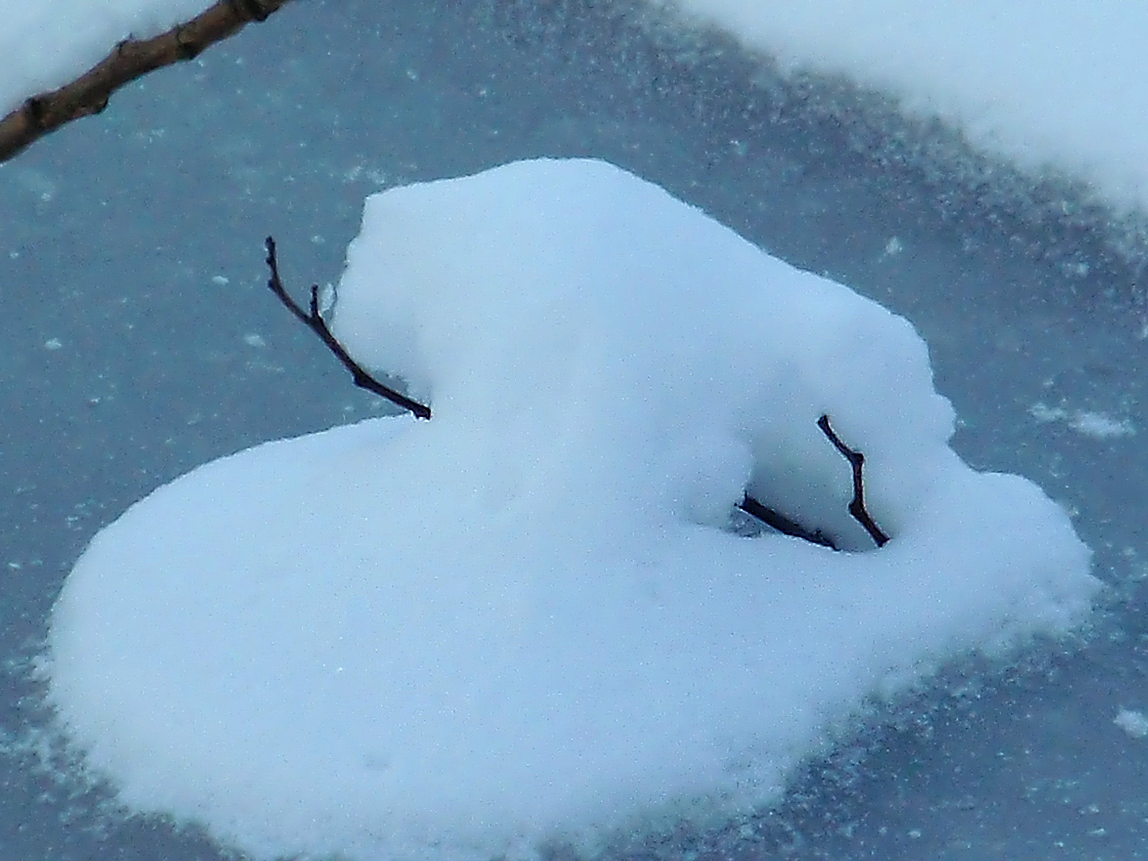 Сердце из снега на ветке
