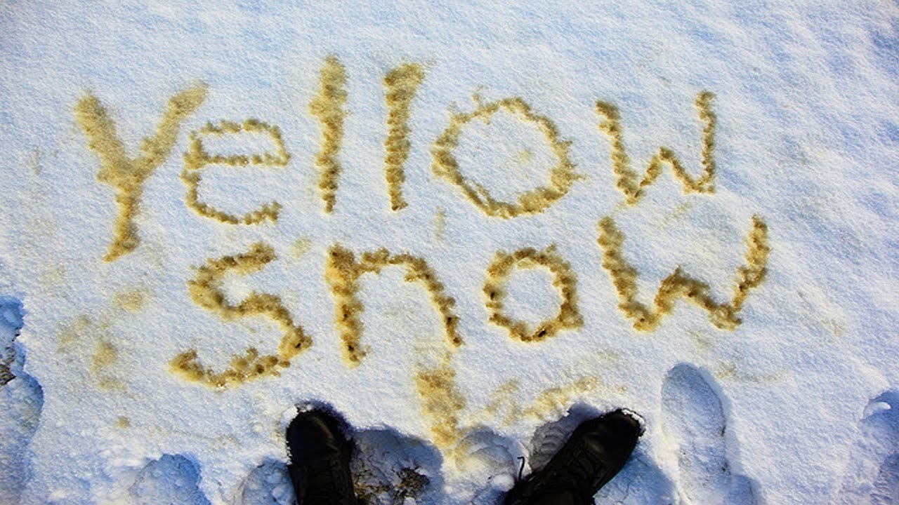 Желтые надписи на снегу