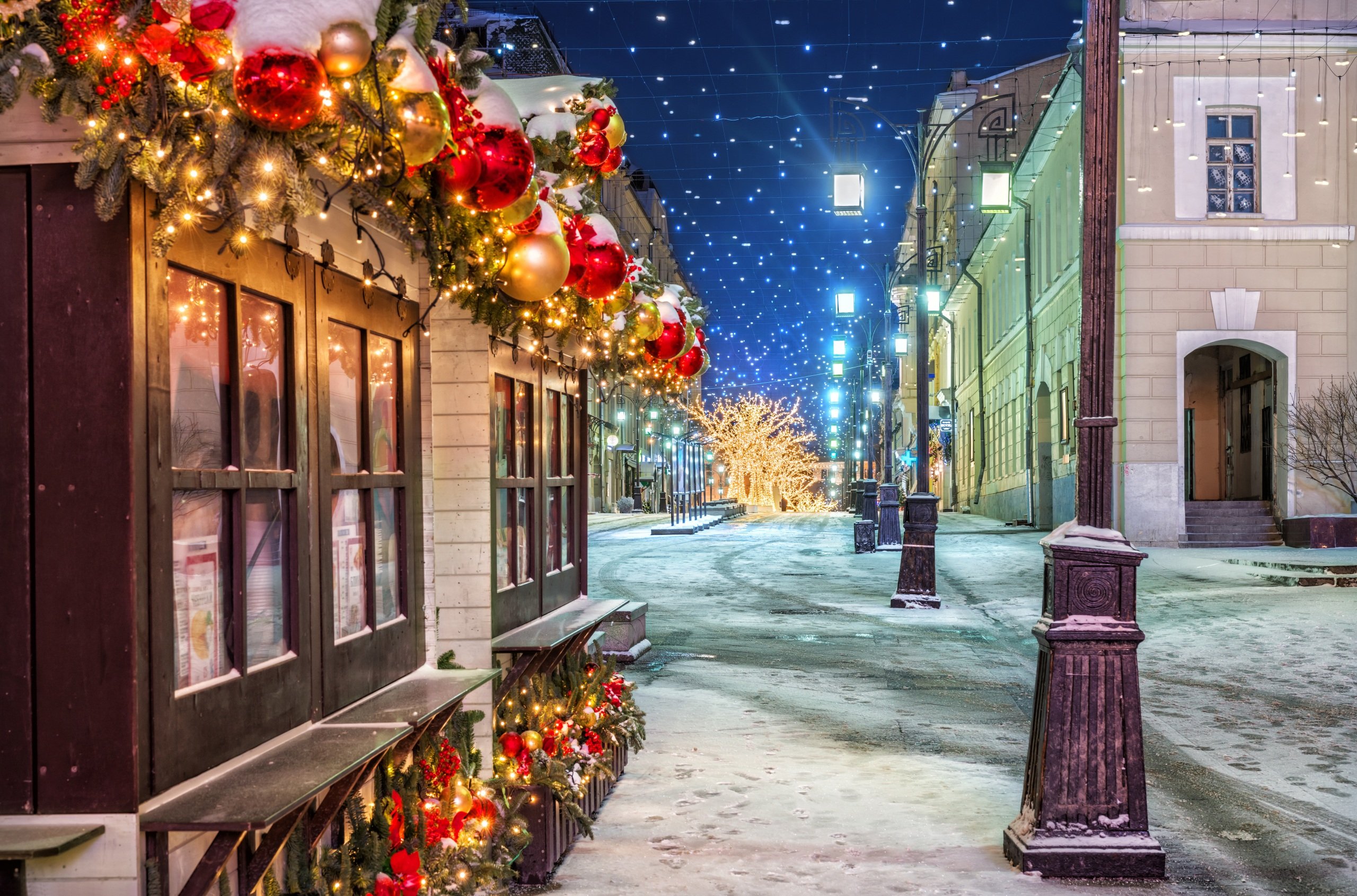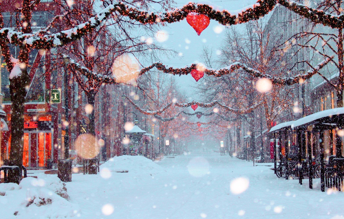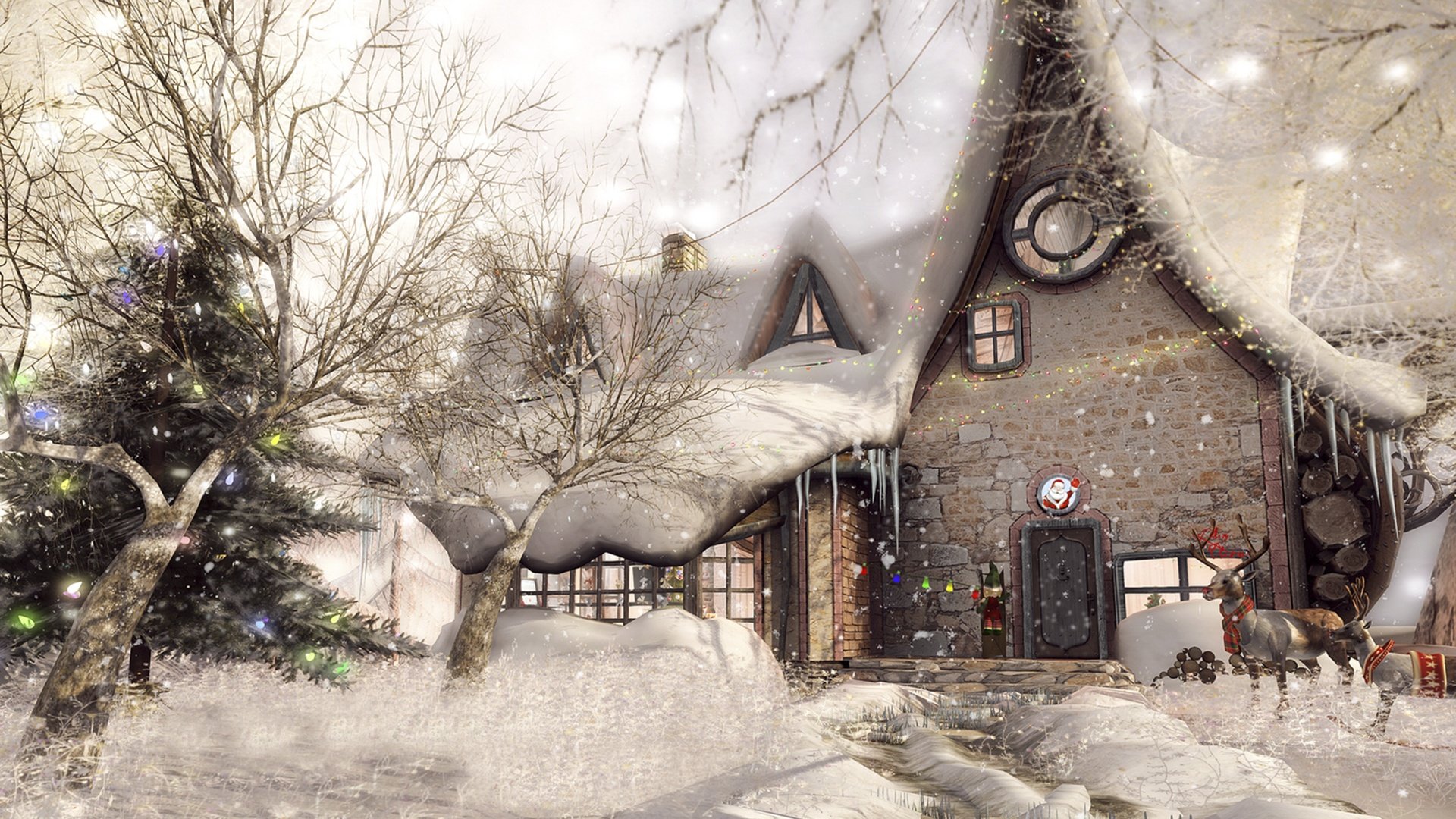 На картинке, посвященной Рождеству и украшенной снегом, раскрывается волшебная атмосфера праздника. Пушистые снежинки танцуют в воздухе, укрывая деревья и крыши домов своим белоснежным покровом. Свет фонарей мягко отражается на снежной земле, создавая уютное и теплое освещение. Ёлка, украшенная яркими гирляндами и игрушками, стоит в центре изображения, напоминая о предстоящем празднике и радостном настроении. Вдалеке виднеется силуэт небольшого города, утопающего в мягком снегопаде. Эта картина приносит чувство волшебства, радости и тепла, характерное для рождественских праздников.