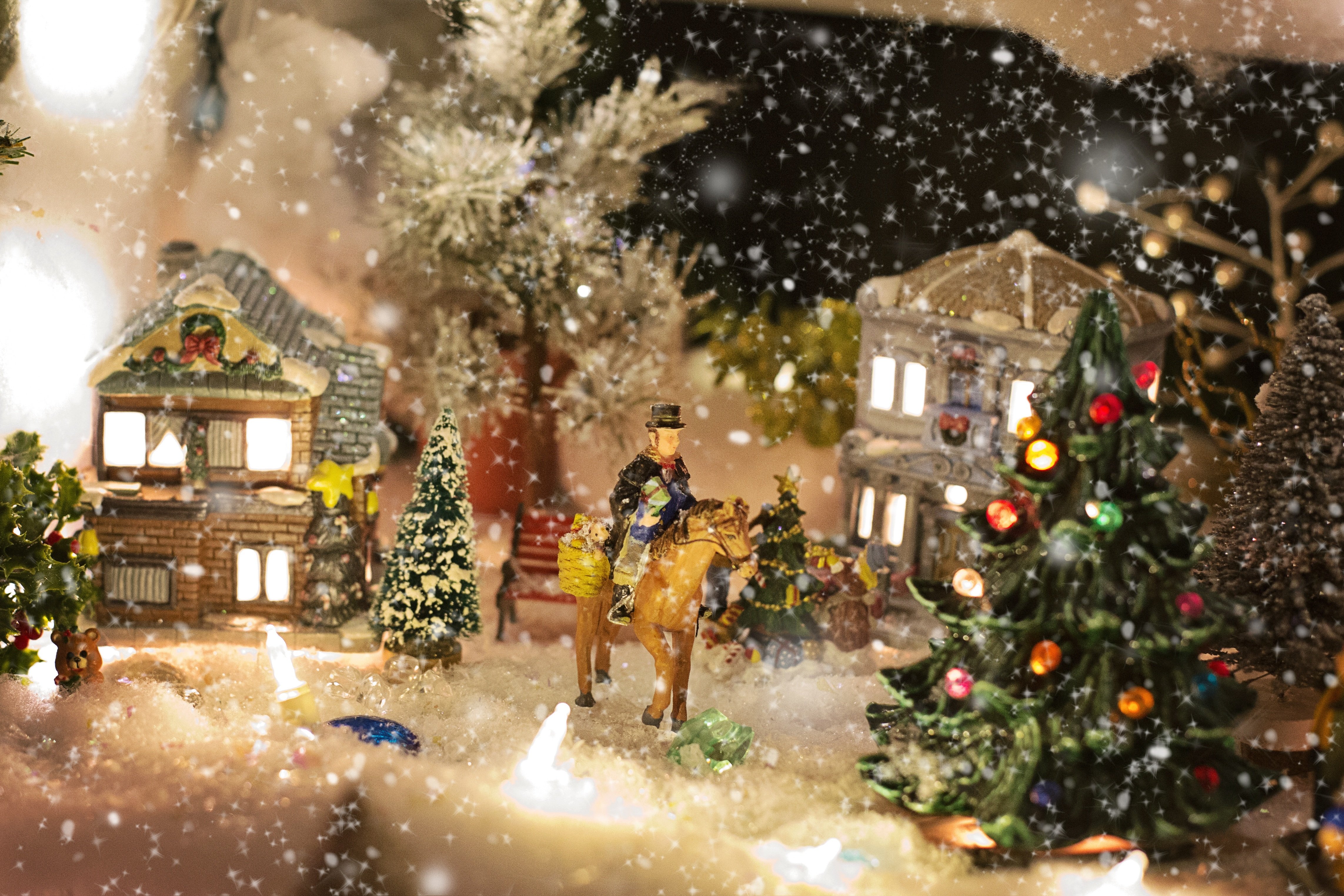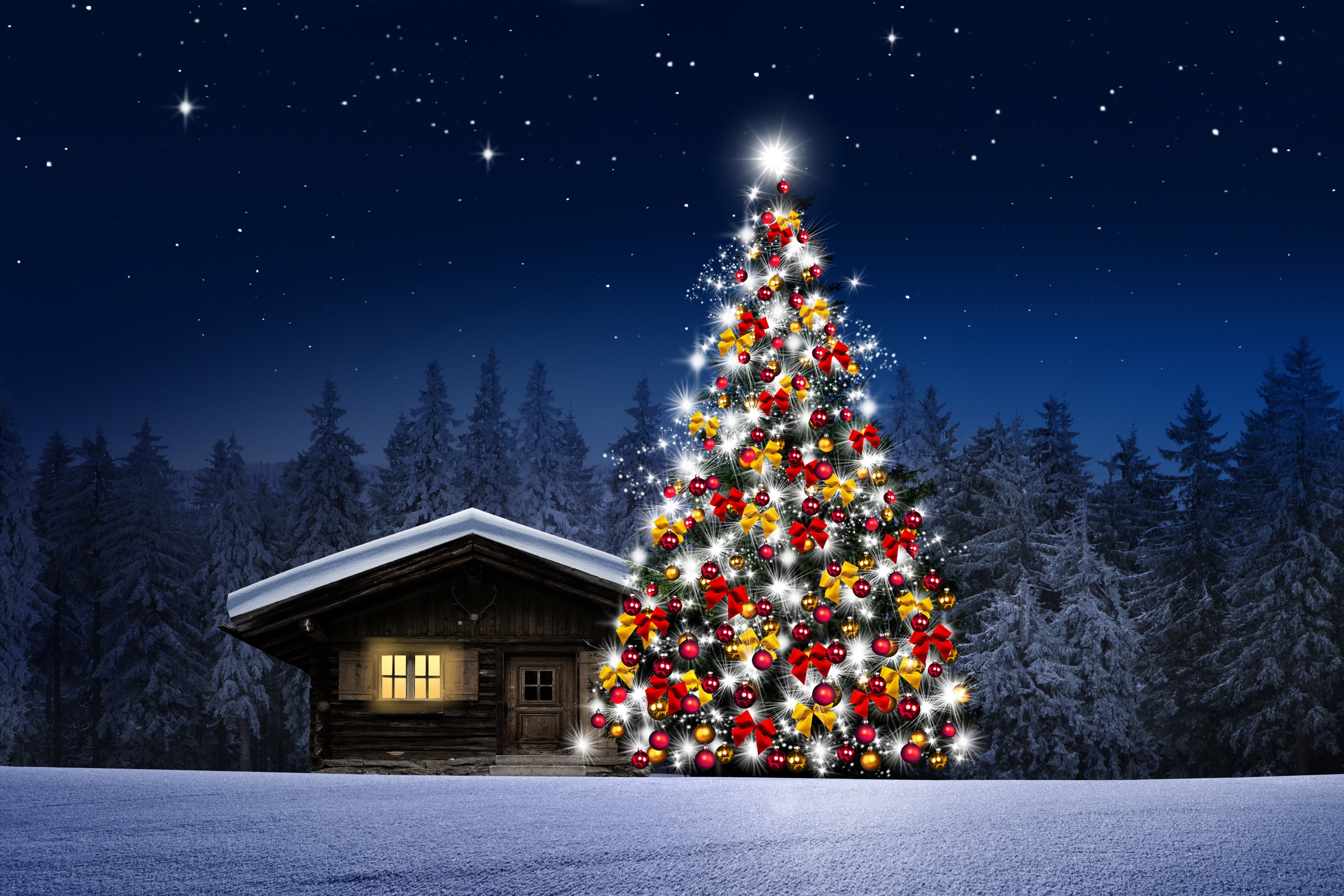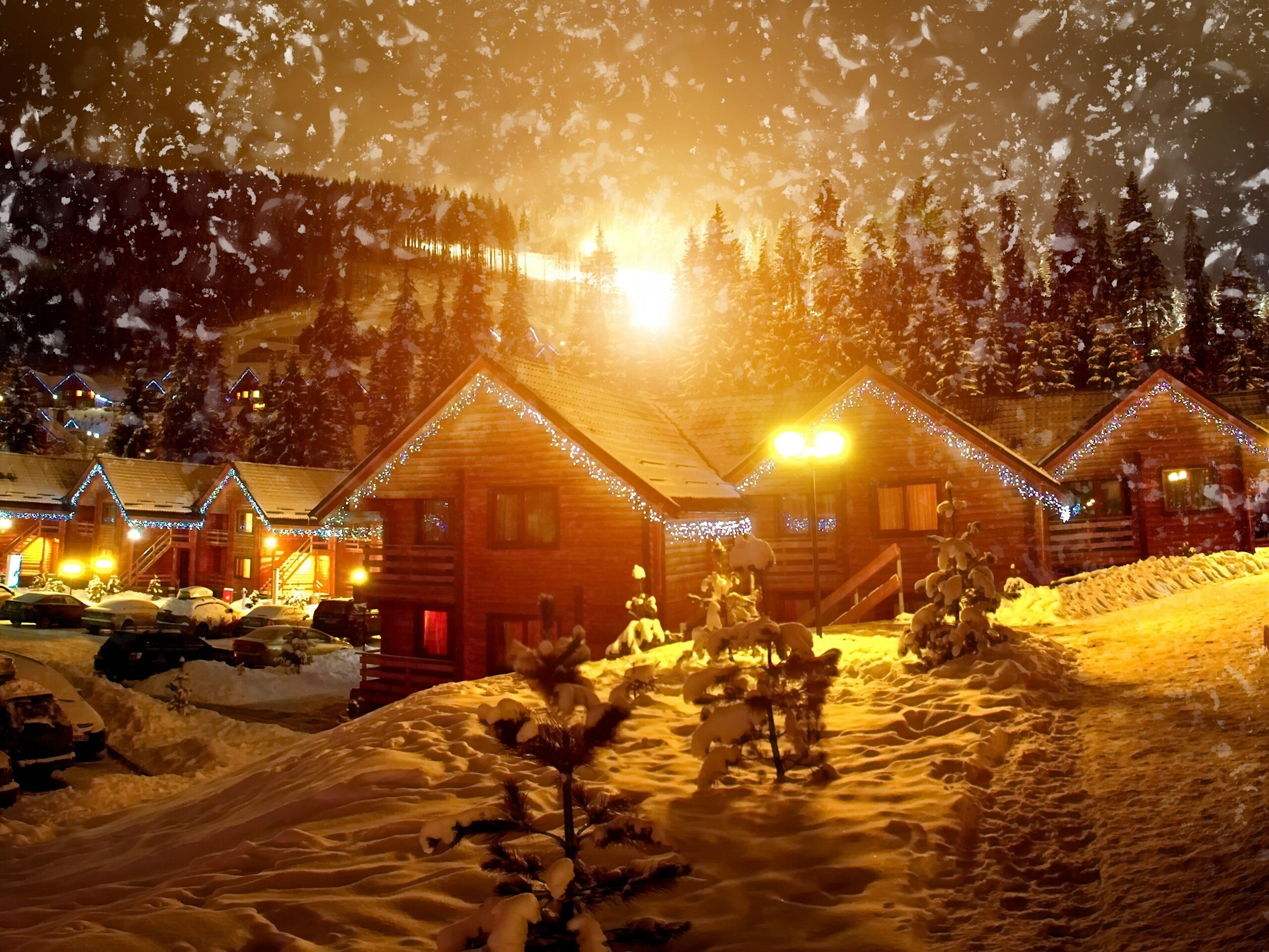 На картинке, посвященной Рождеству и украшенной снегом, раскрывается волшебная атмосфера праздника. Пушистые снежинки танцуют в воздухе, укрывая деревья и крыши домов своим белоснежным покровом. Свет фонарей мягко отражается на снежной земле, создавая уютное и теплое освещение. Ёлка, украшенная яркими гирляндами и игрушками, стоит в центре изображения, напоминая о предстоящем празднике и радостном настроении. Вдалеке виднеется силуэт небольшого города, утопающего в мягком снегопаде. Эта картина приносит чувство волшебства, радости и тепла, характерное для рождественских праздников.