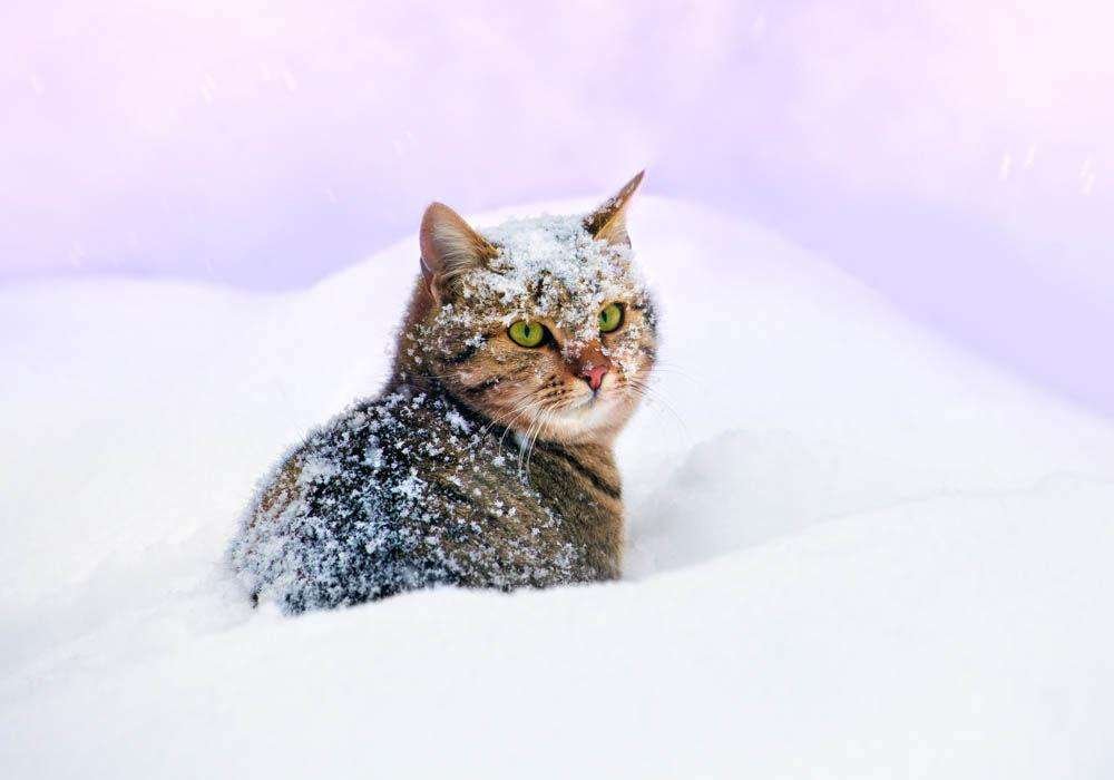 Кот в сугробе