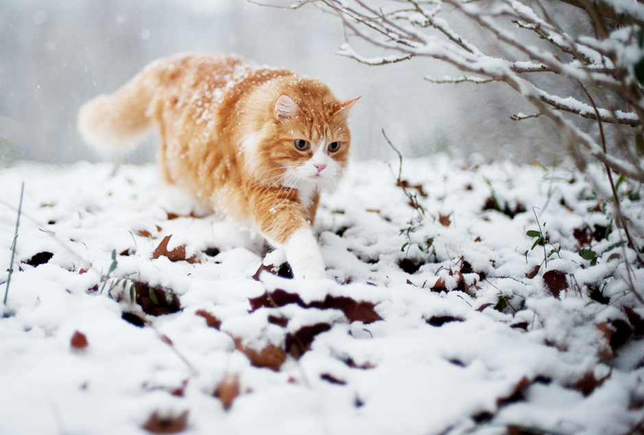 Рыжие коты зимой