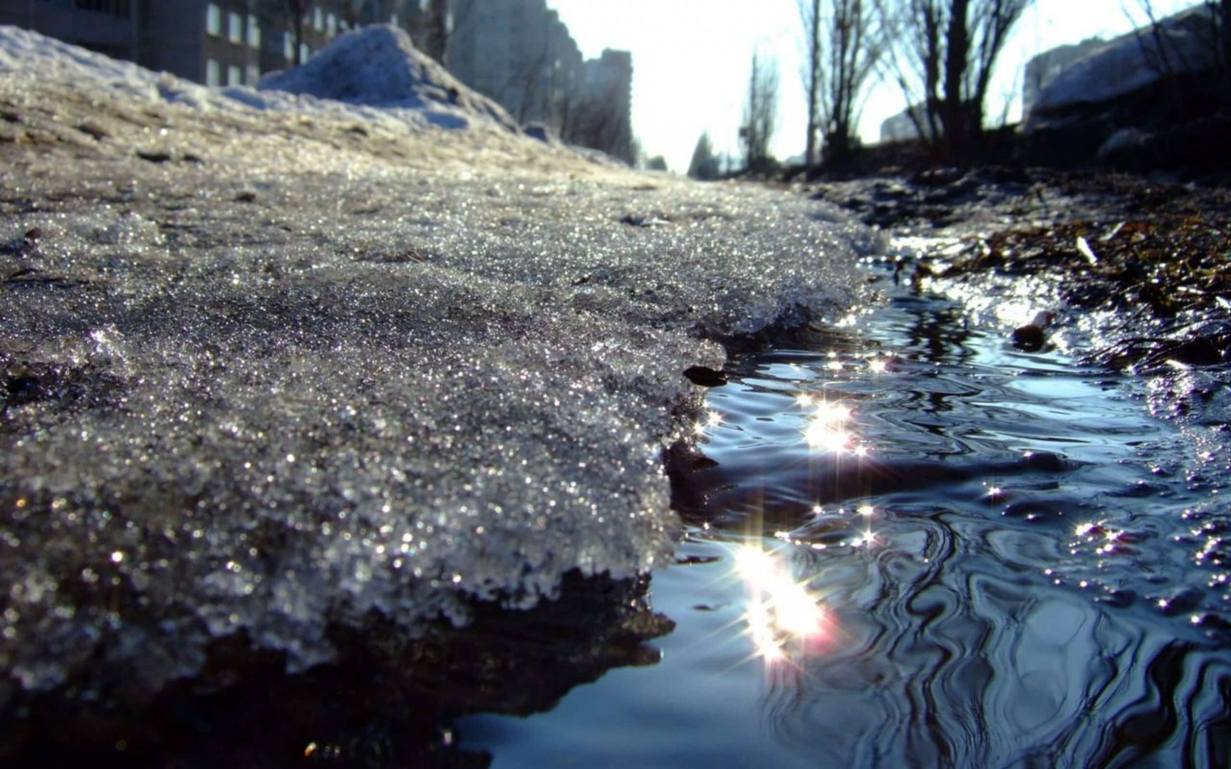 ![Весной снег превращается в воду]()
