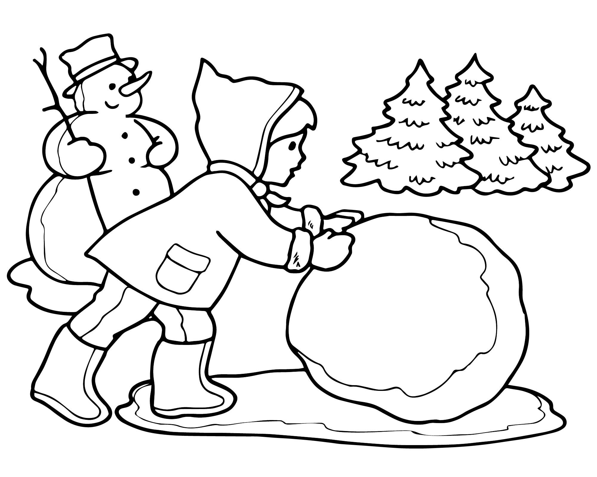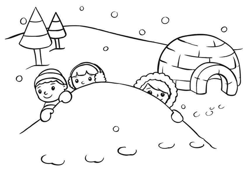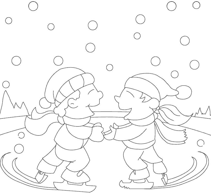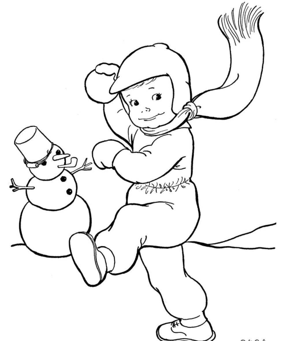 Дети зимой раскраска