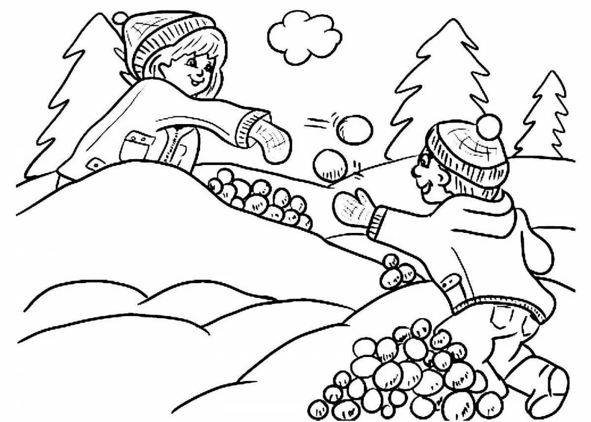 ![Игра в снежки раскраска]()