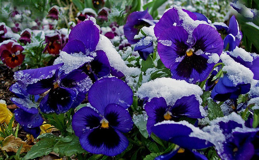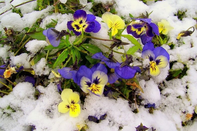 Анютины глазки под снегом