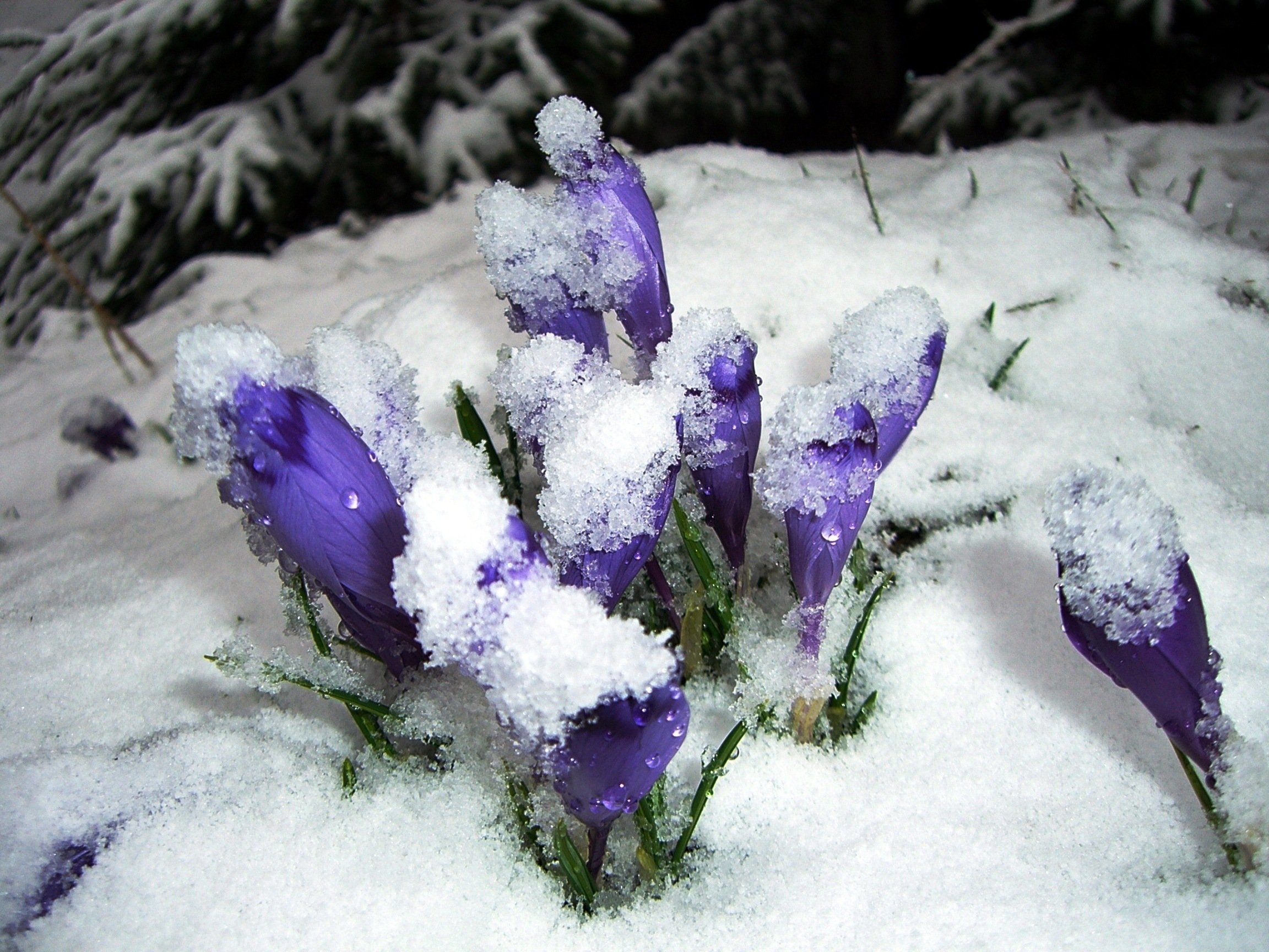 Первые крокусы в снегу