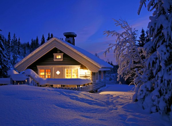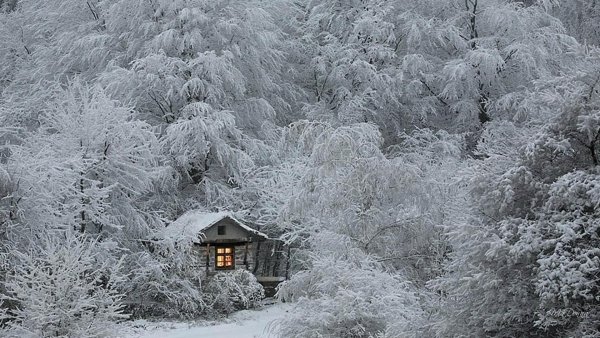 ![Домик в зимнем лесу]()