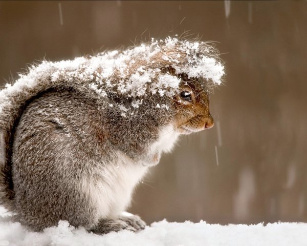 Белка радуется снегу