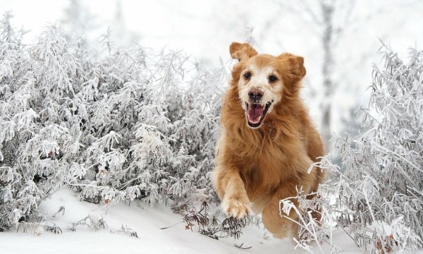 Собака бежит по снегу