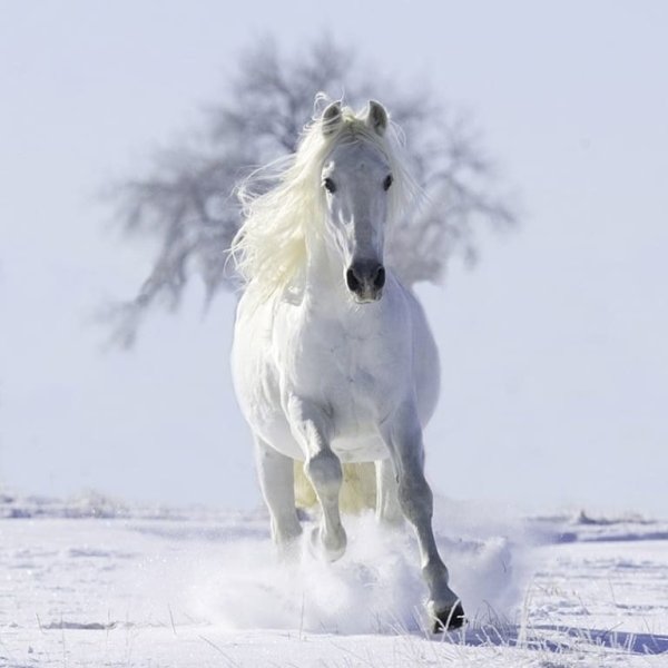 Конь бежит по снегу
