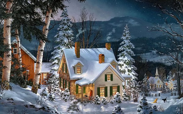 Зимняя сказка раскрывается на картинках новогоднего домика, уютно утопающего в пушистом снегу. Белоснежное одеяло накрывает крышу и окна, создавая атмосферу тепла и уюта. Дымок из трубы словно рассказывает о том, что внутри дома царит тепло и уют. Искрящиеся огоньки гирлянд и яркие новогодние украшения придают магическую атмосферу этой зимней картинке, наполняя сердца радостью и волшебством праздника.