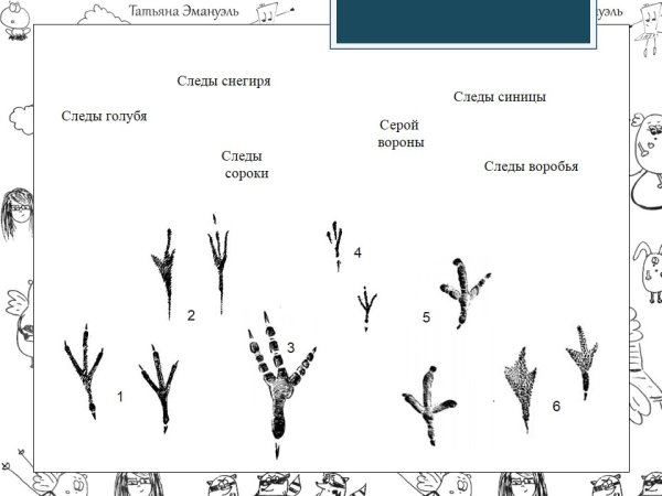 Следы птиц подписанные