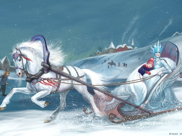 Снежная Королева и Кай в санях