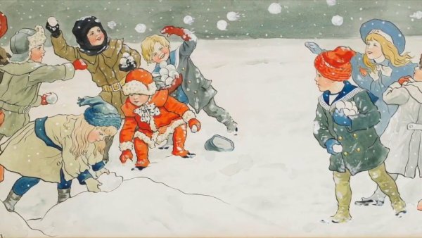 ![Дети играют в снежки]()