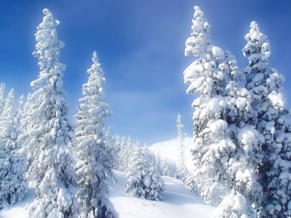 ![Хвойные деревья зимой]()