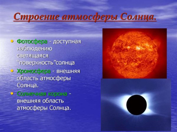 ![Строение атмосферы солнца Фотосфера хромосфера Солнечная корона]()