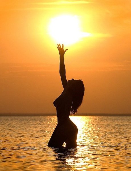 Женщина обнимает солнце