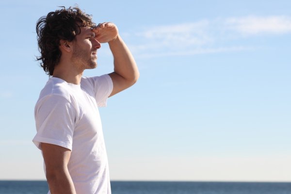 Человек прикрывается рукой от солнца