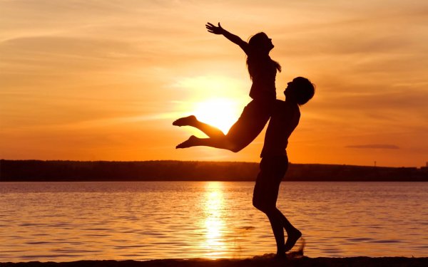 ![Влюбленные на закате]()