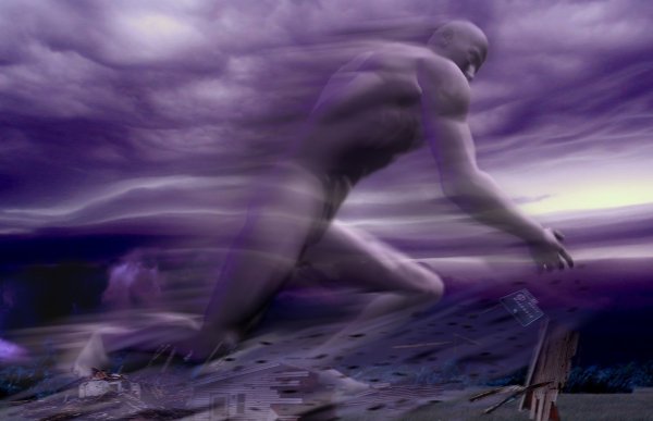 Человек бежит по полю