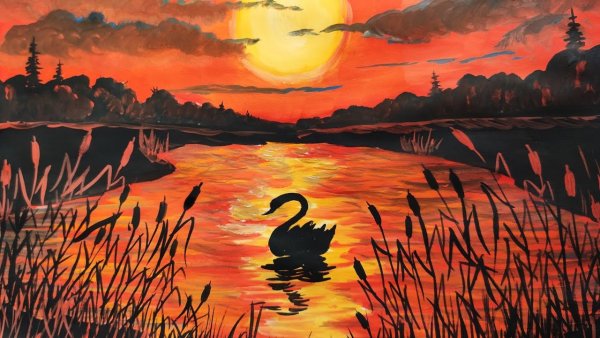Закат гуашью