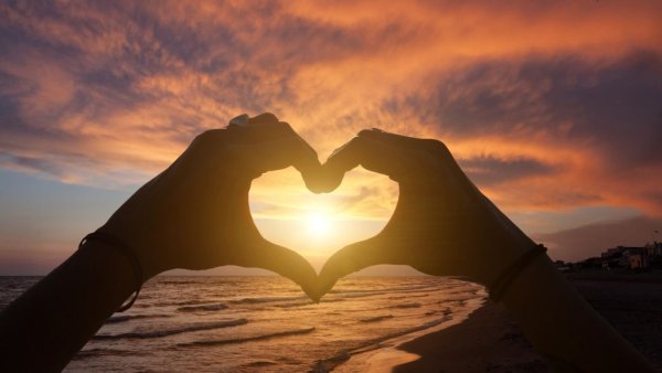Романтический закат солнца уткнувшегося в горизонт, окрашивающий небо оттенками оранжевого, розового и фиолетового, создает удивительное зрелище, которое заставляет сердце биться быстрее от восторга. Эта картина природы напоминает нам о красоте мира, о дарованном нам каждый день чуде заката. Сердечко, символ любви и нежности, на фоне такого удивительного шоу, добавляет волшебства и романтики этому моменту, заставляя нас ценить каждую секунду проведенную вместе с близкими.