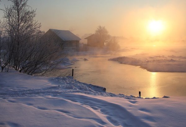 Зимнее солнце в деревне