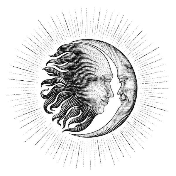 Солнце и месяц черно-белое