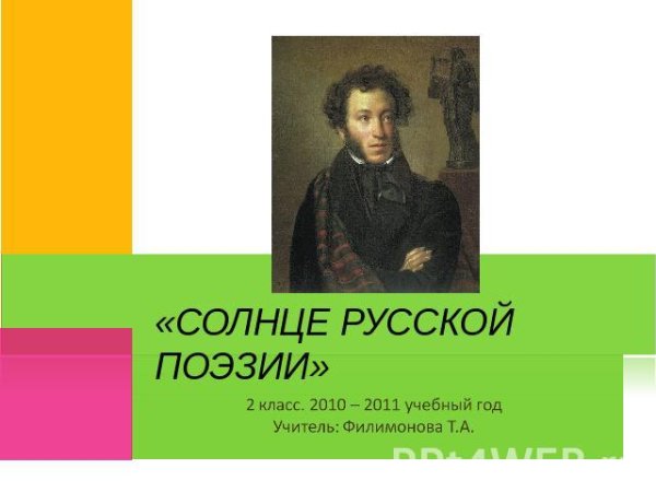 Александр Сергеевич Пушкин солнце русской поэзии