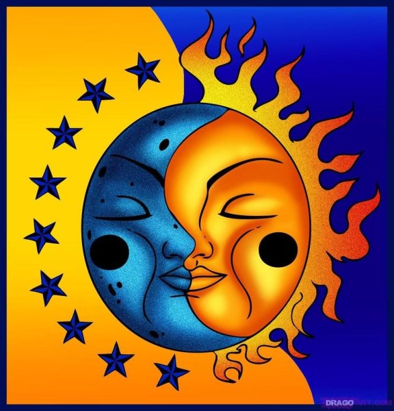 ![Солнце и Луна рисунок]()