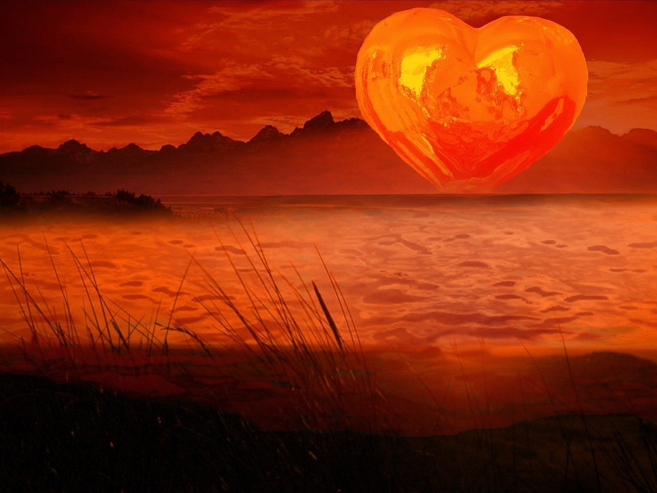 ![Сердце на закате]()