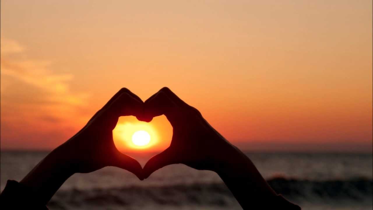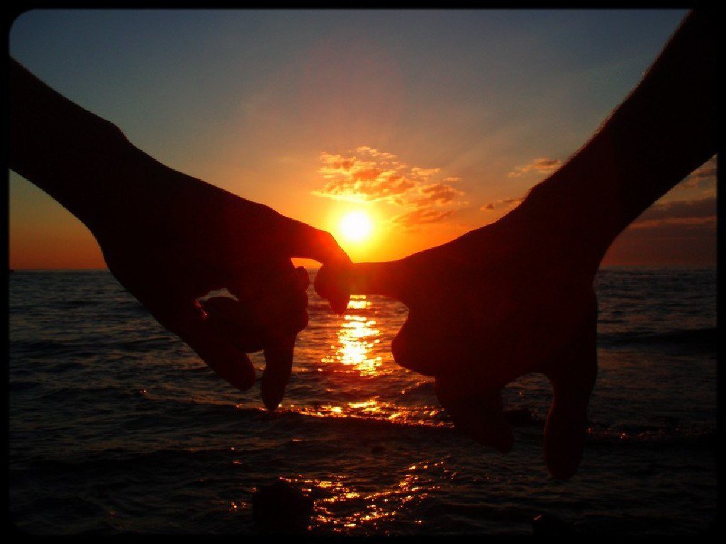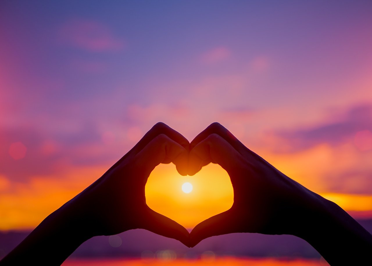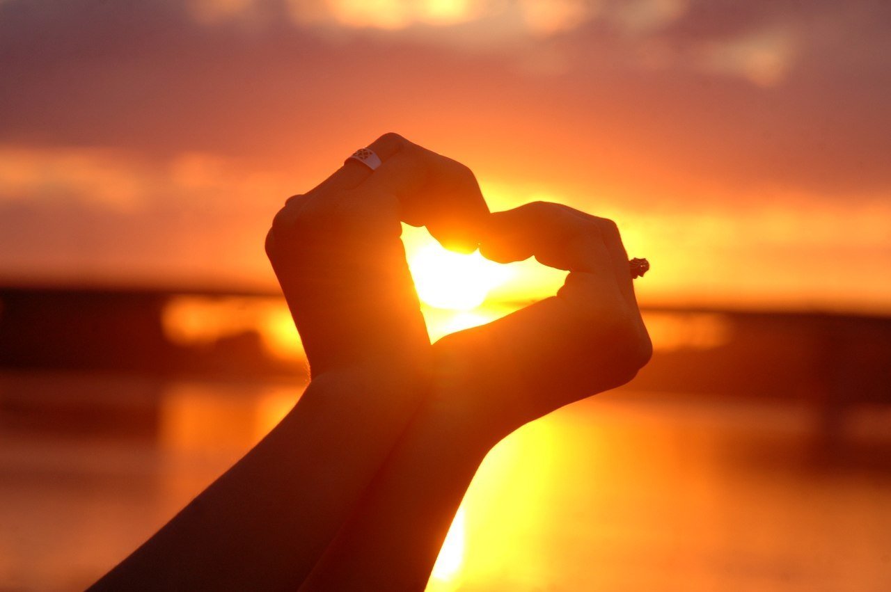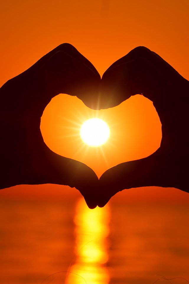 ![Сердце из пальцев на закате]()