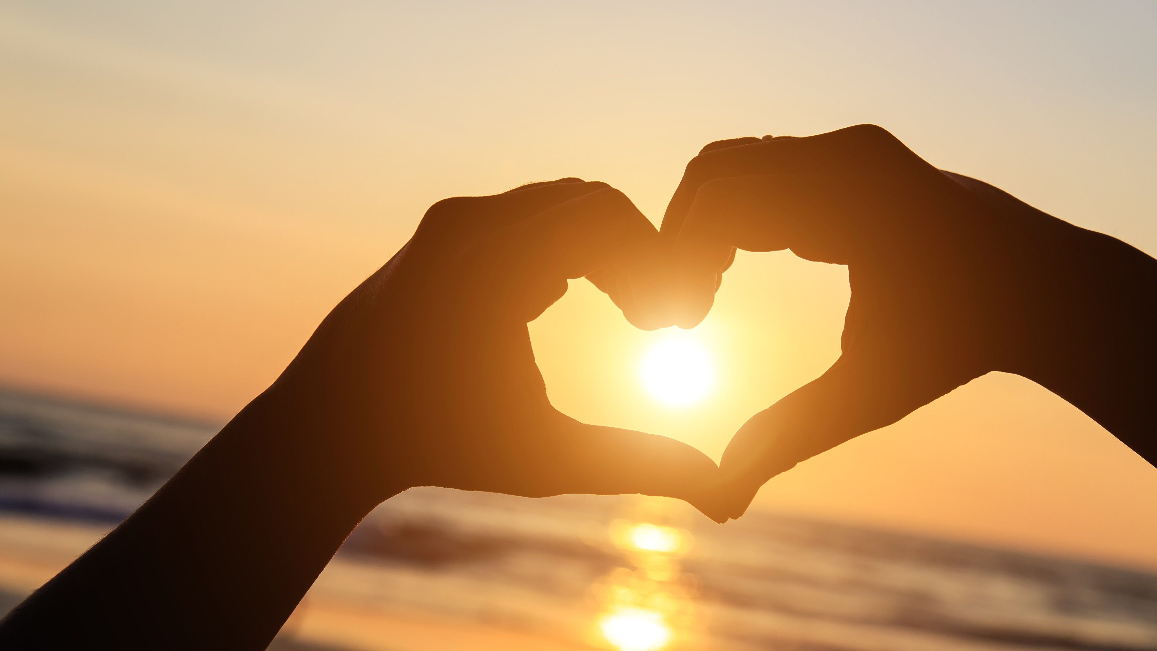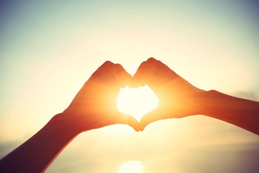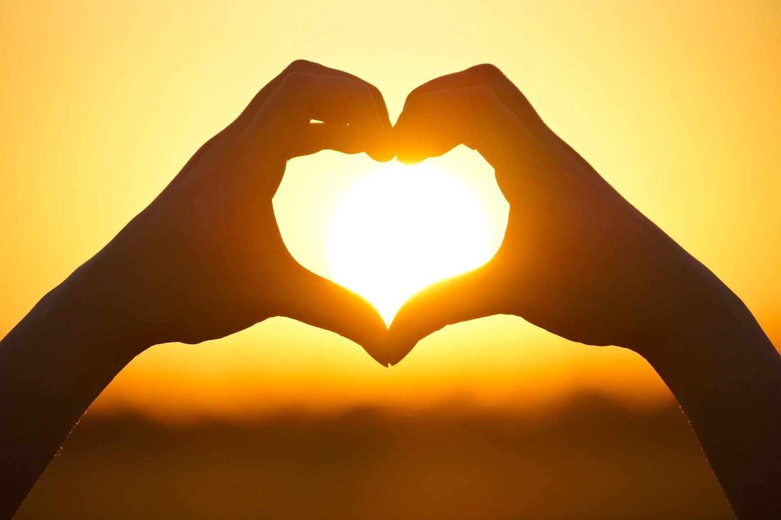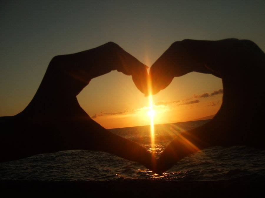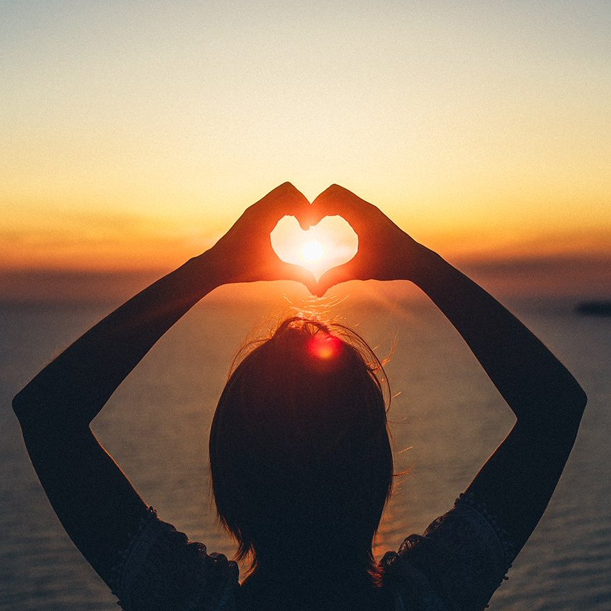 ![Сердце из пальцев на закате]()