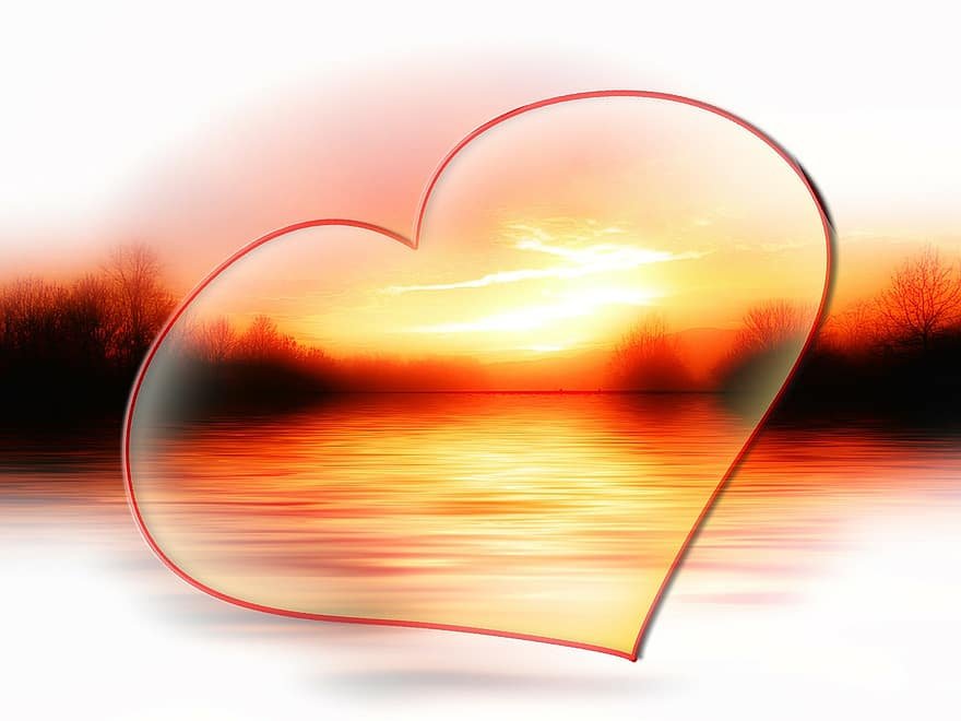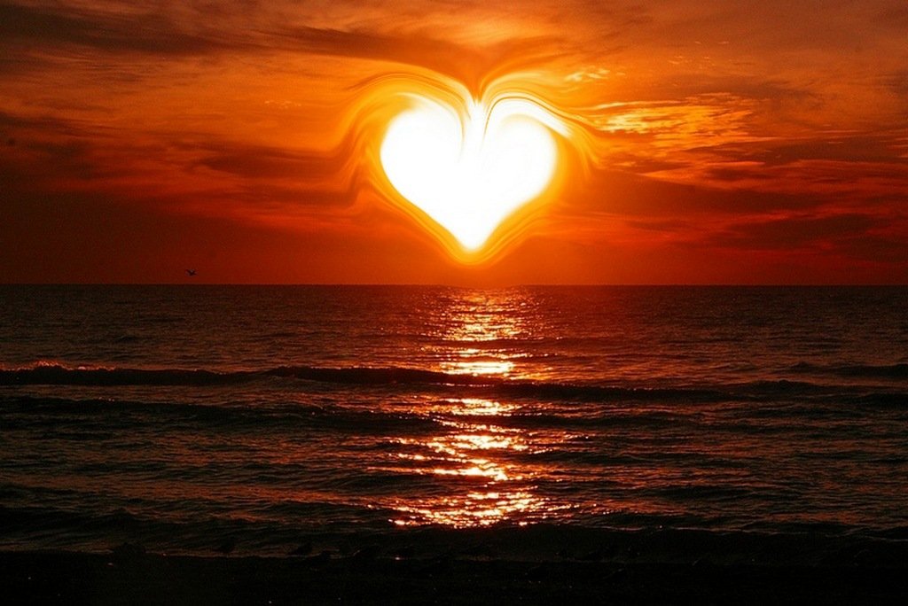 ![Красивый закат с сердцем]()