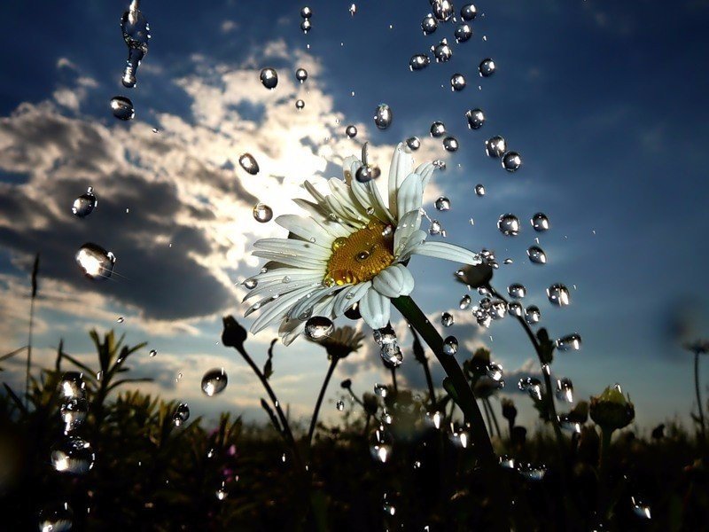 ![Ыветок Ромашка под дождём]()
