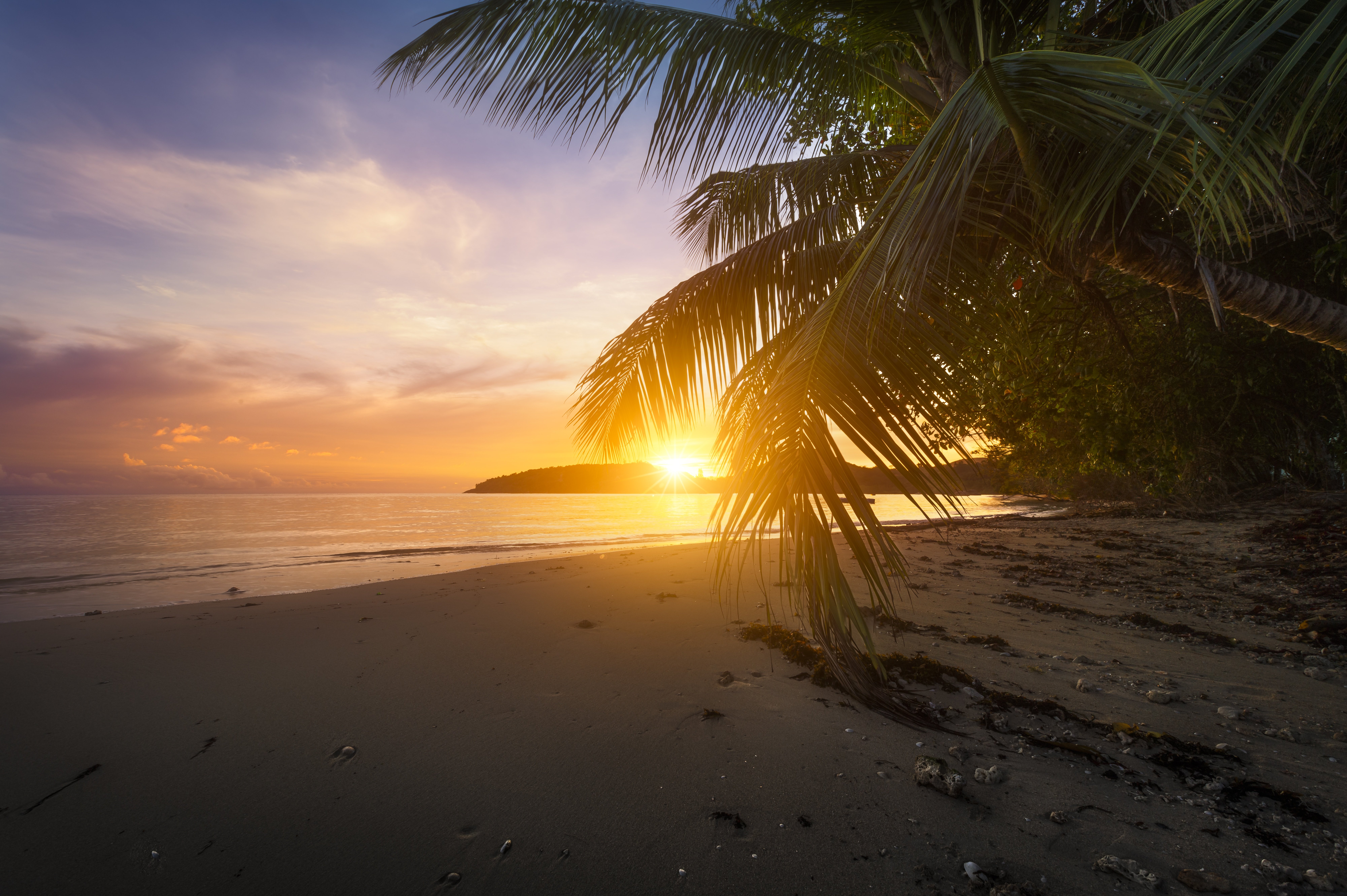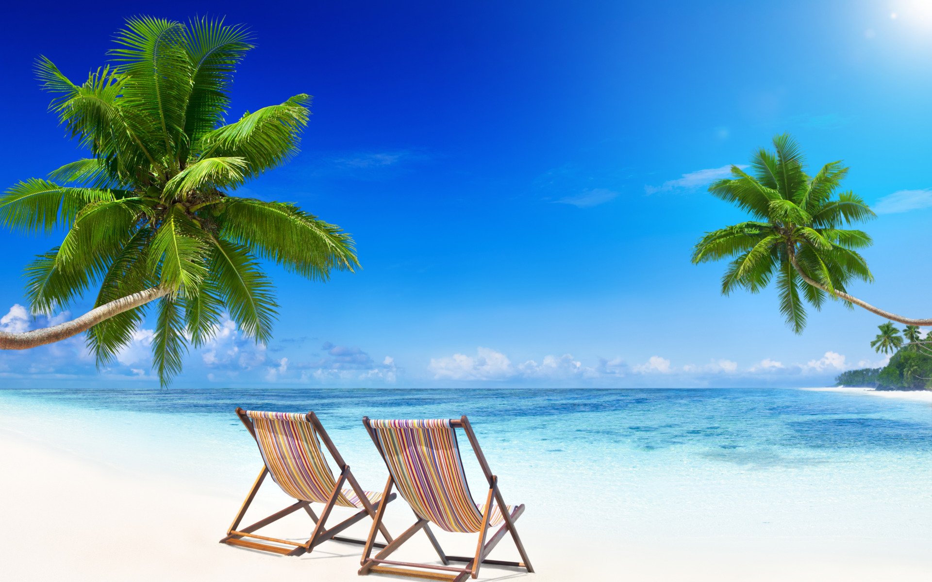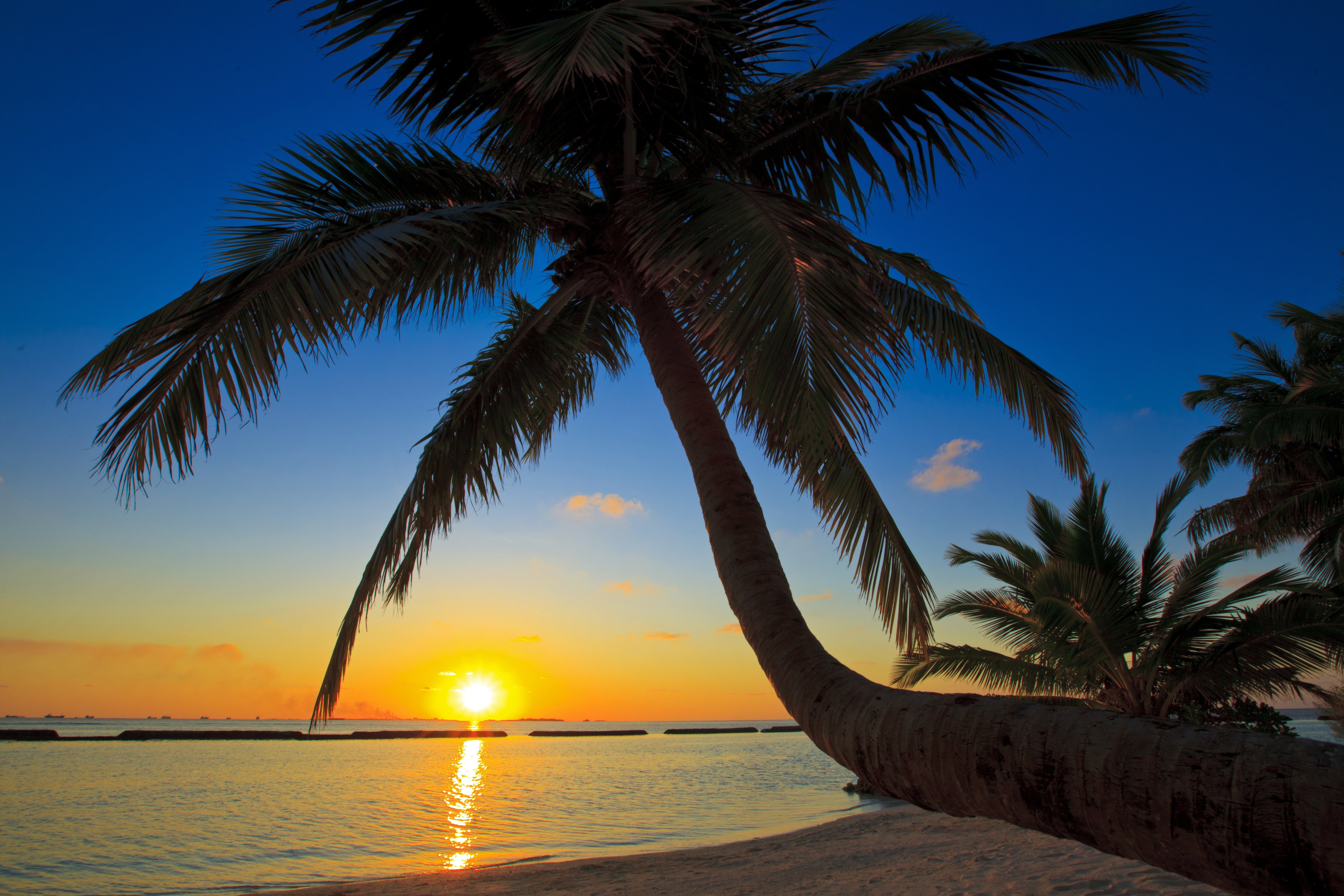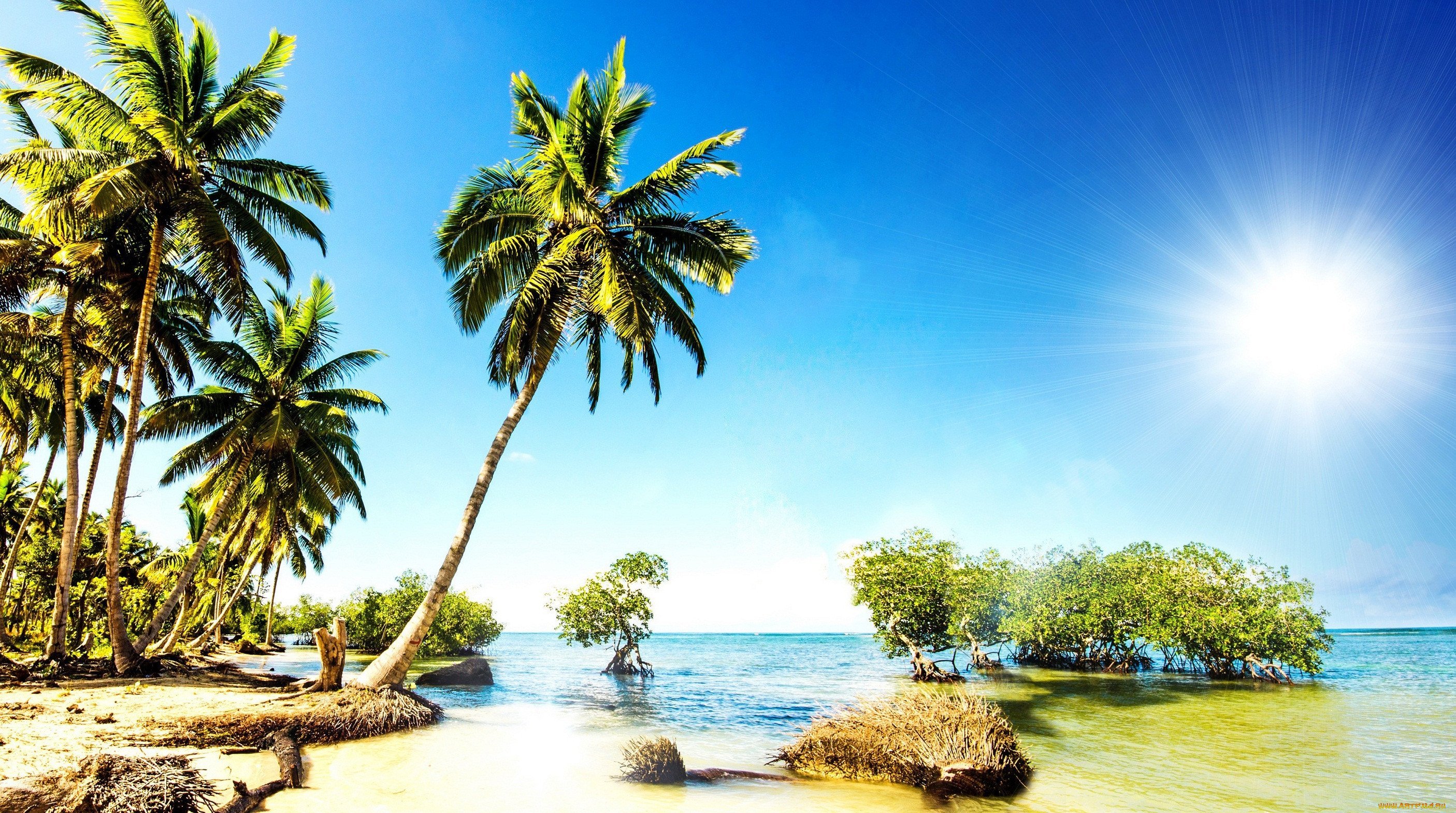 ![Пальмы солнце пляж]()