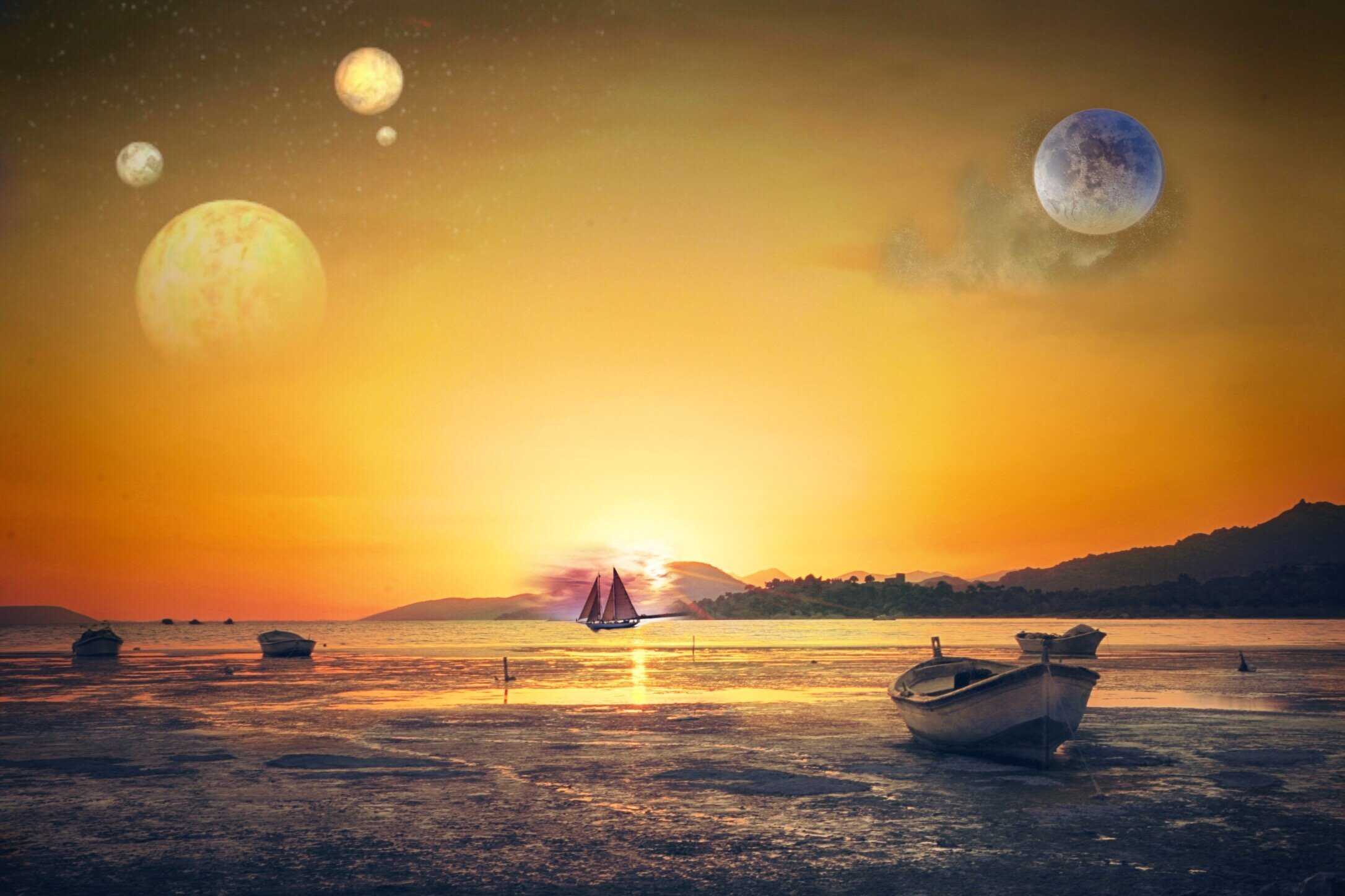 Несколько лун на небе