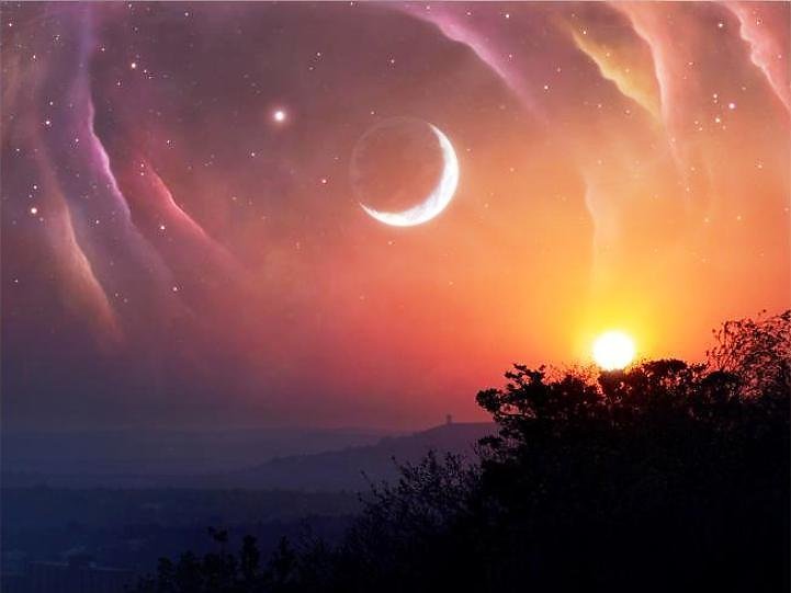 ![Закат в космосе]()