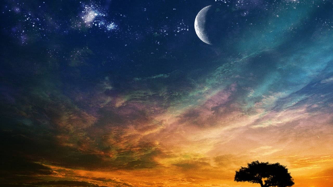 Красивый закат с луной