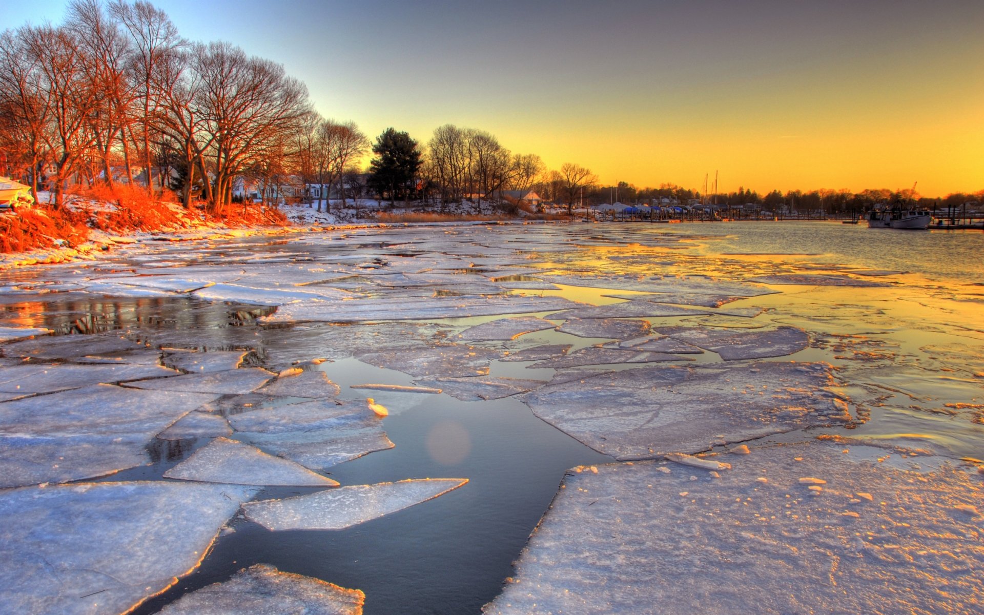 Зима река солнце