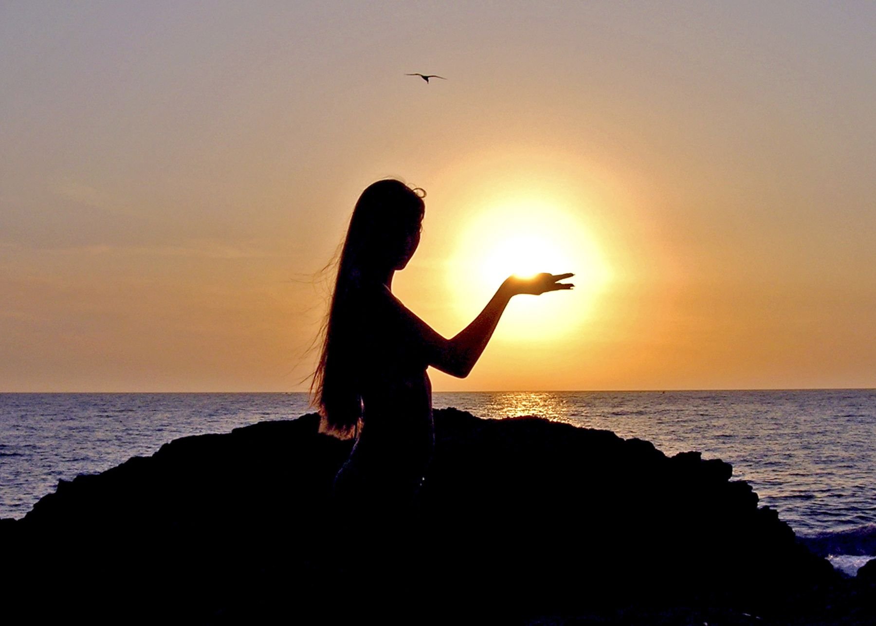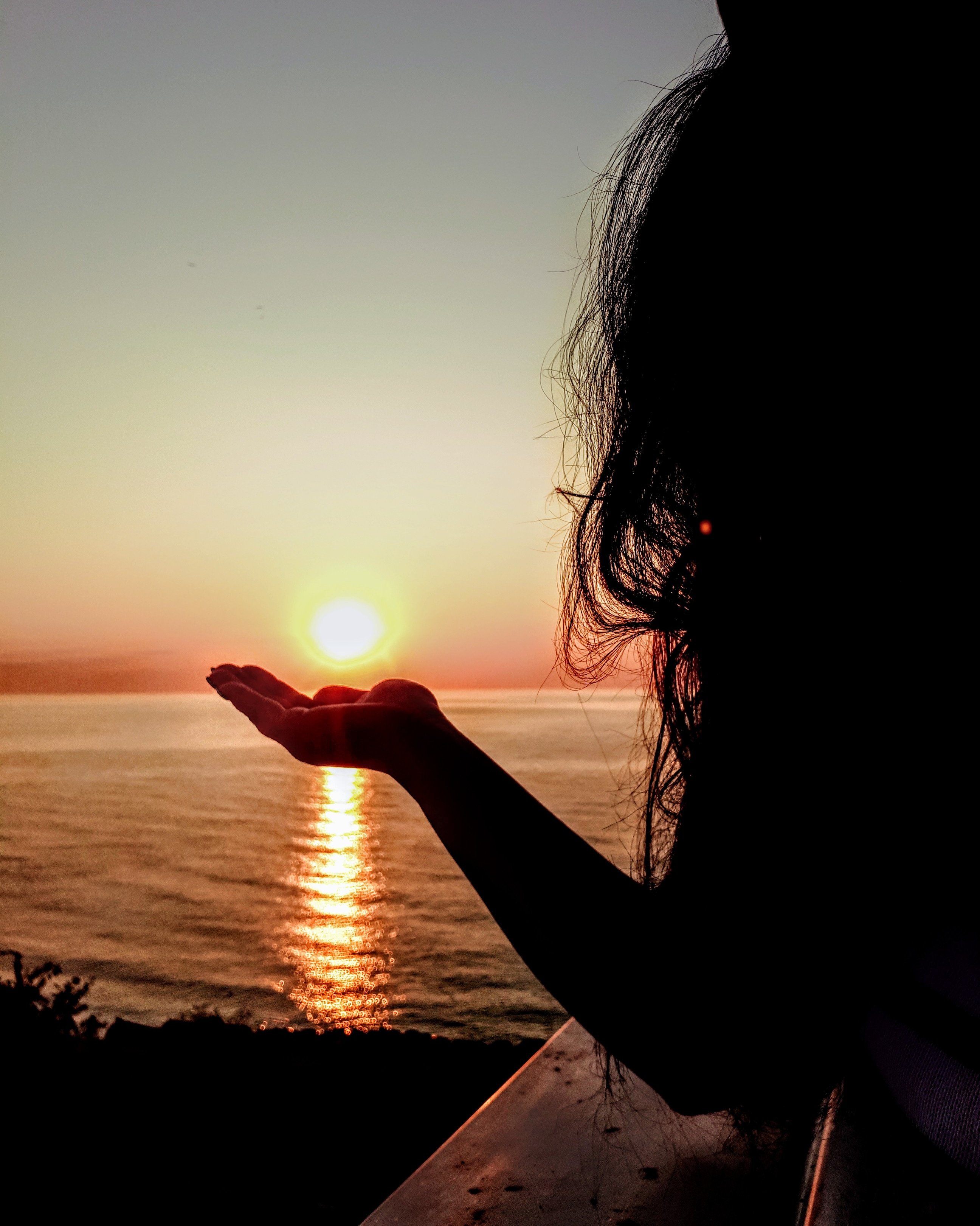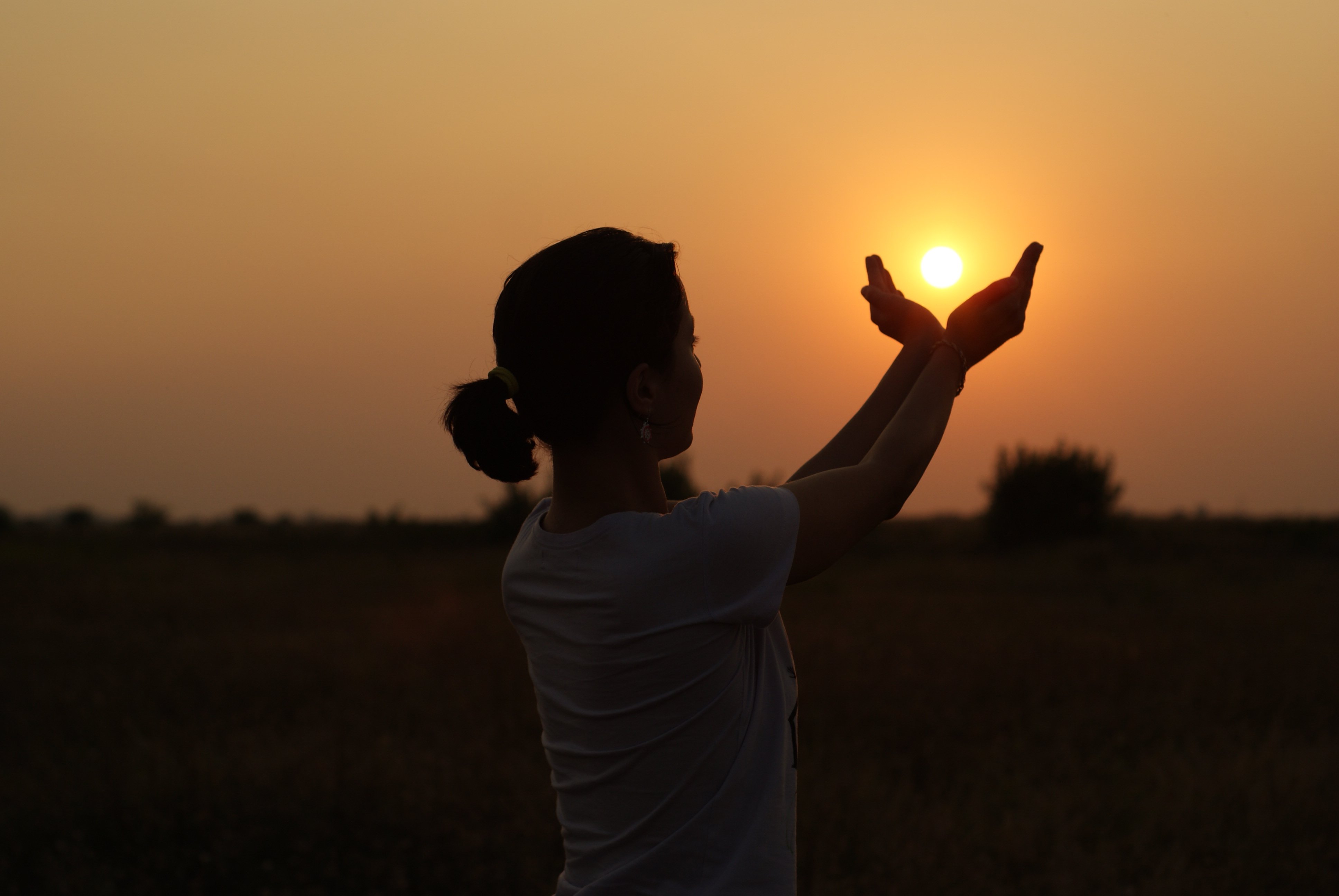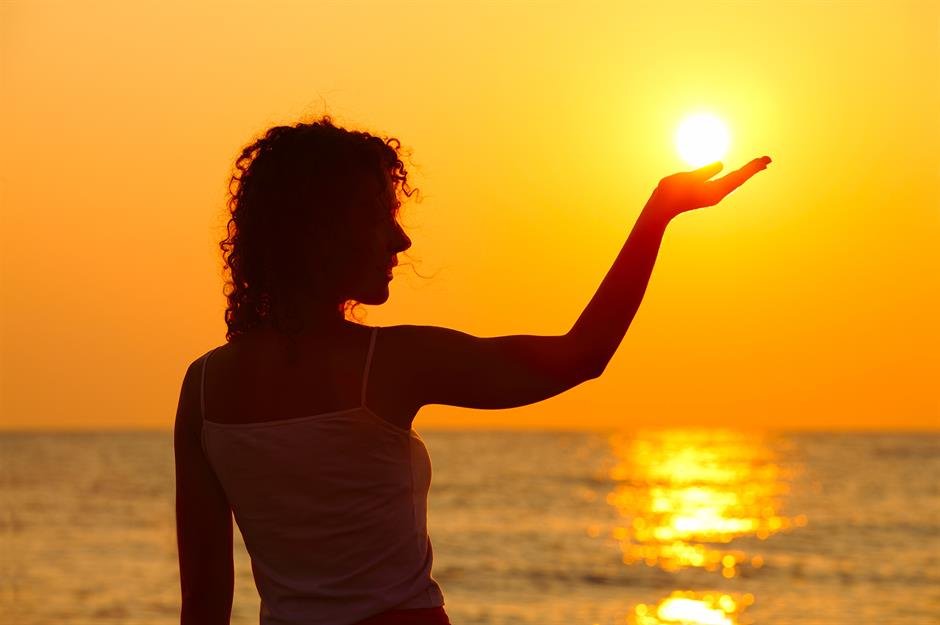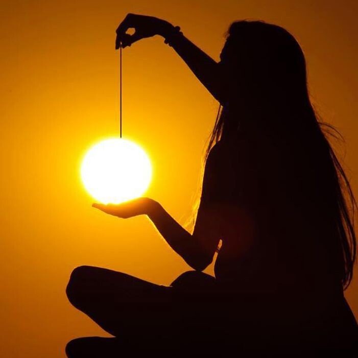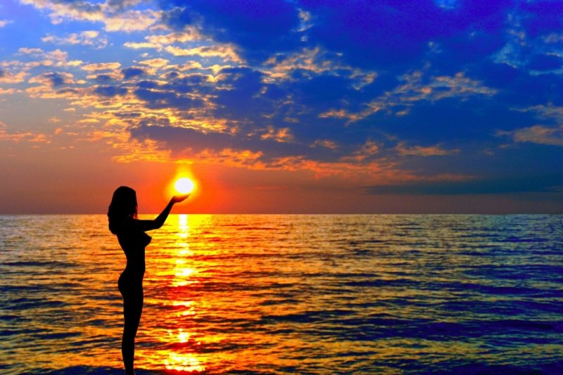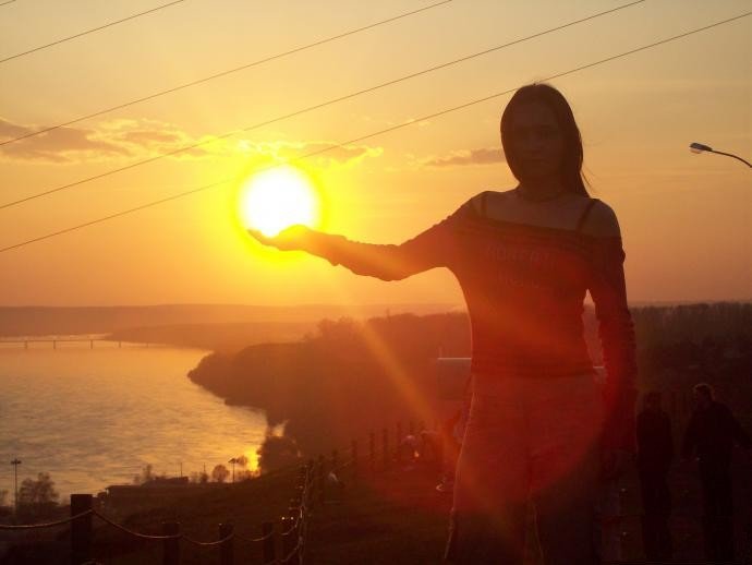 Девушка держит солнце