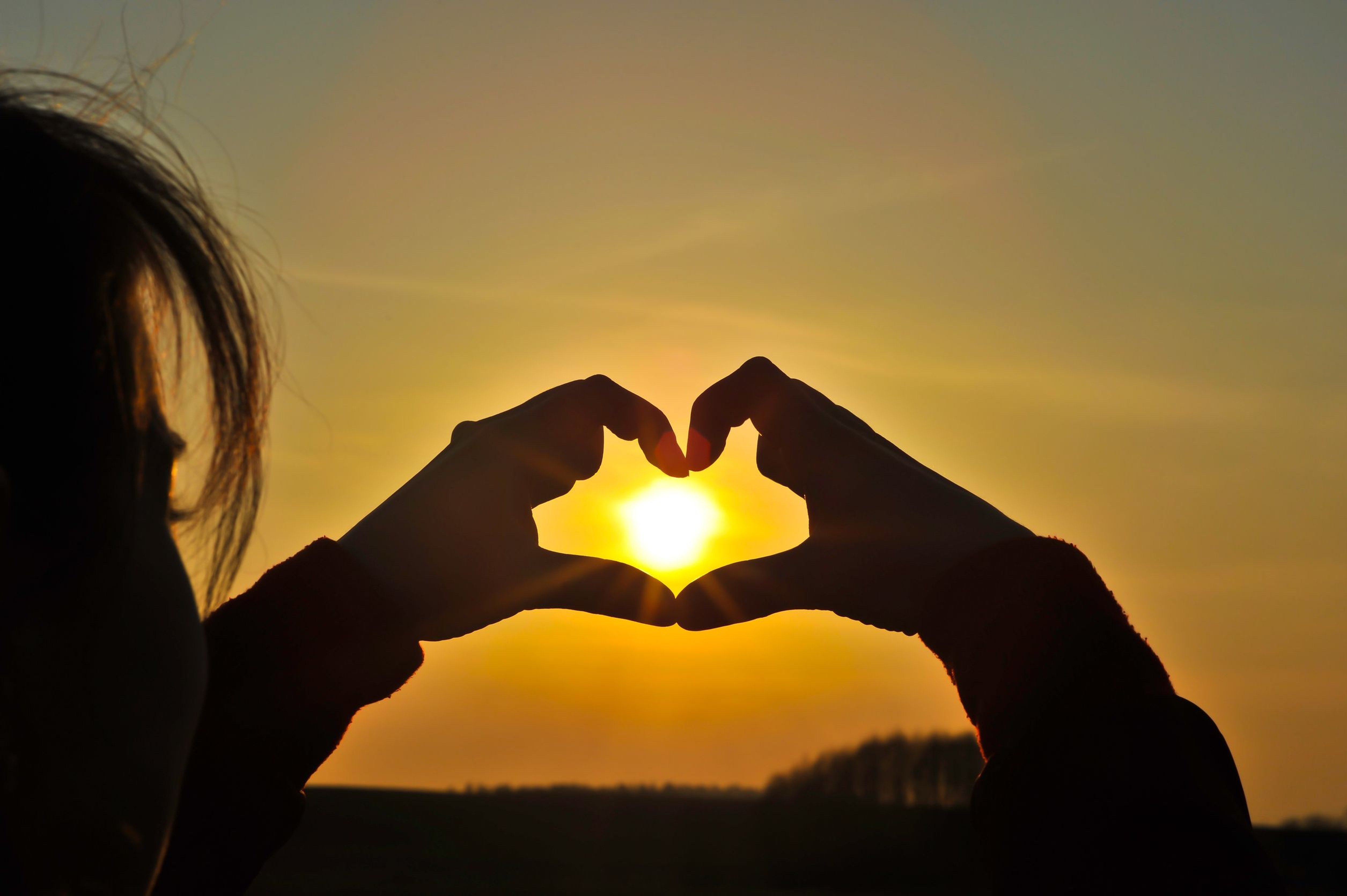 Сердце руками на закате