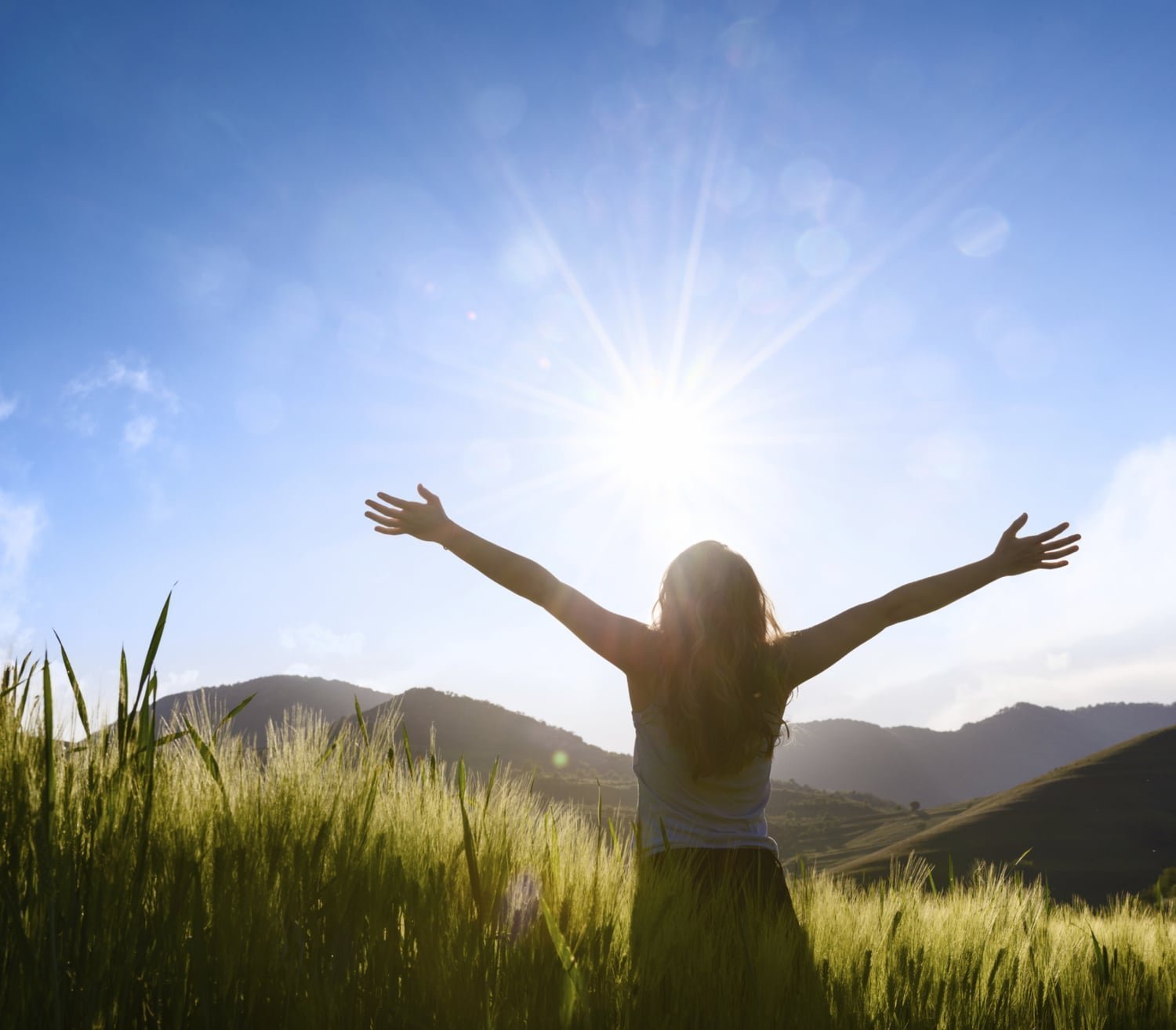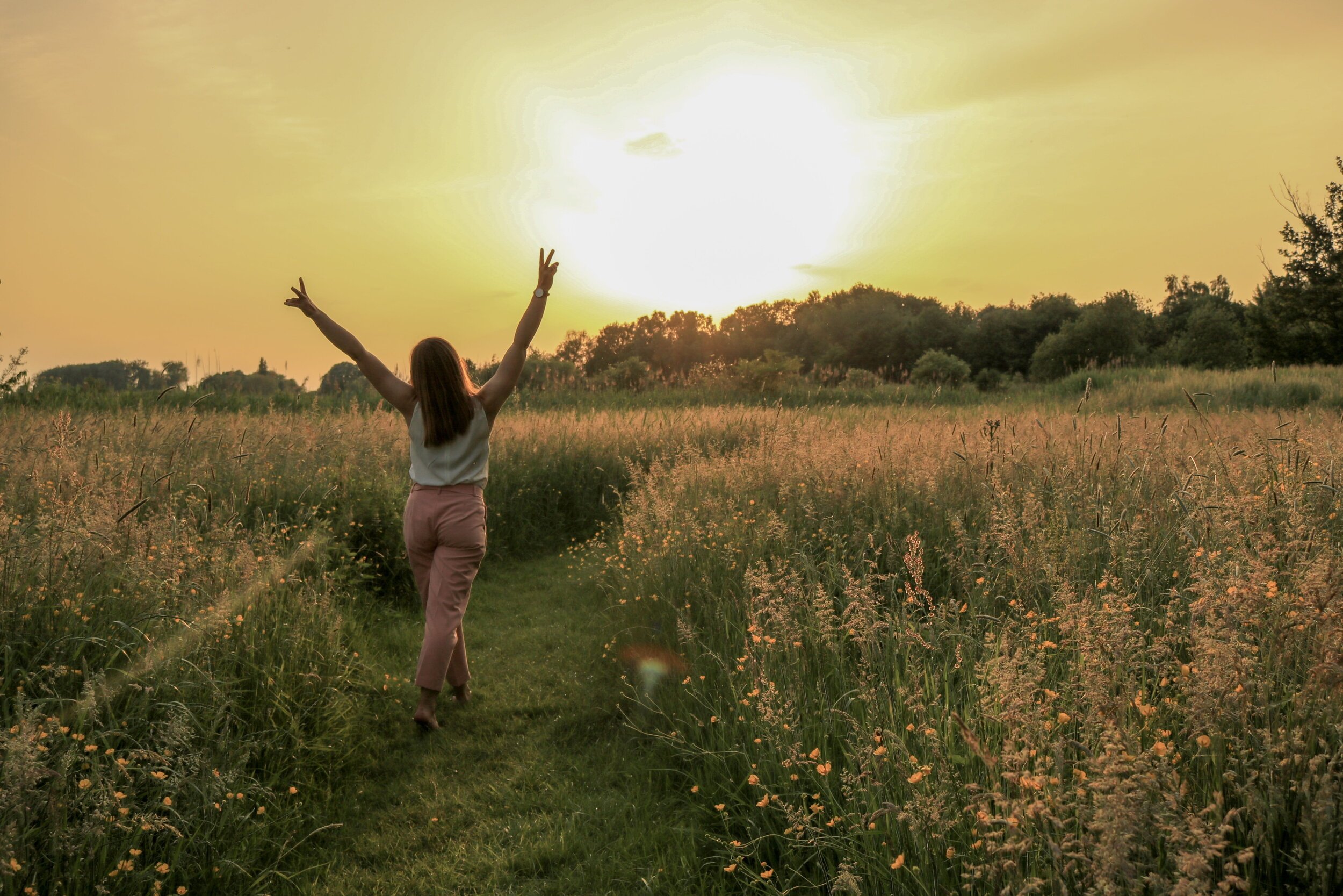 Девушка со спины солнце