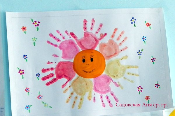![Пусть всегда будет солнце пальчиковое рисование]()